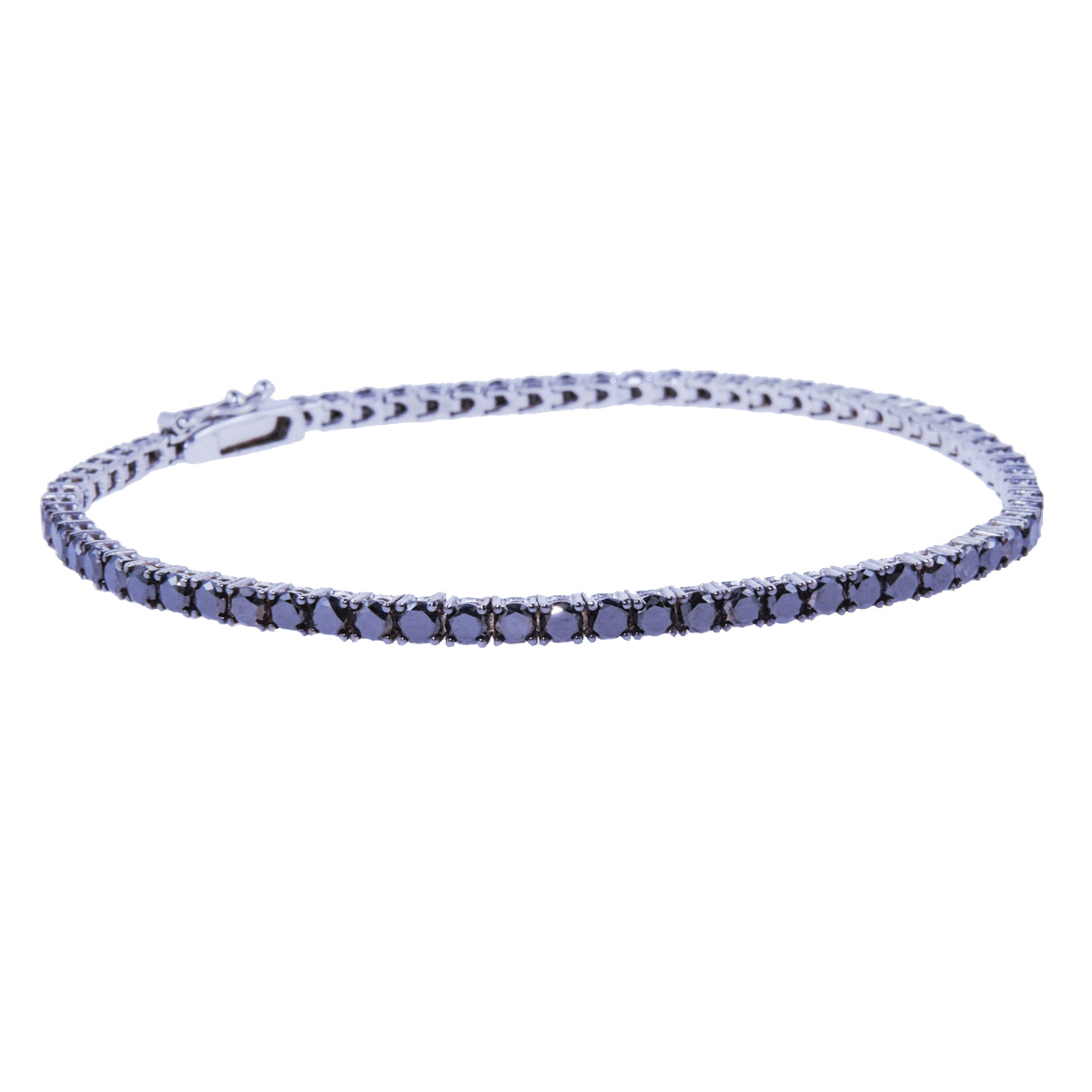 Discover timeless elegance with this black diamond tennis bracelet crafted from 18K white gold with a sleek black rhodium finish. Featuring a stunning array of round-cut black diamonds, it offers a captivating contrast and sophisticated sparkle. Designed for versatile wear, this bracelet seamlessly combines modern style with classic charm. Perfect for elevating any ensemble, it embodies luxury and refinement. Whether worn alone or layered with other pieces, this black diamond tennis bracelet is a statement of enduring beauty and impeccable craftsmanship. With the distinction of John Lyras certification.