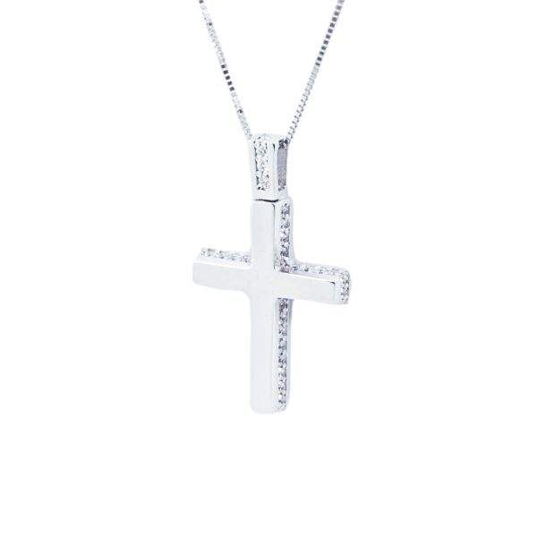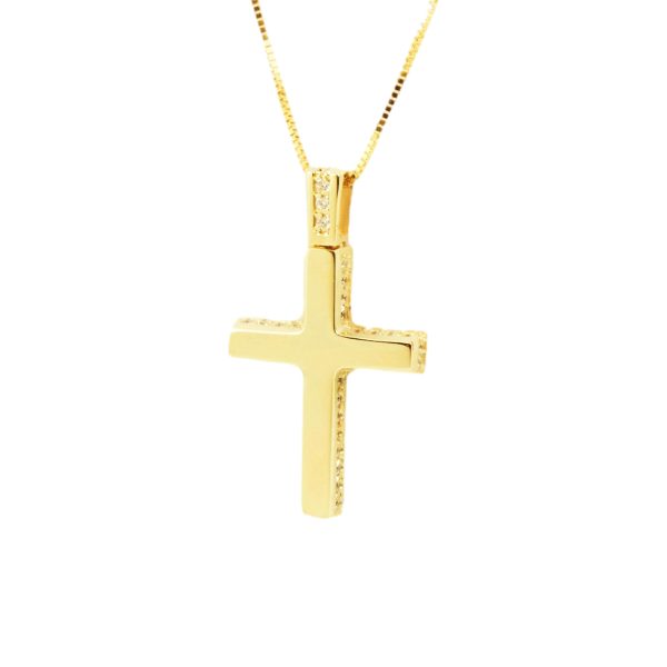 Discover timeless elegance with our gold and cubic zirconia cross and chain jewelry. Crafted in 14K gold, this exquisite piece features a stunning cubic zirconia-encrusted cross that symbolizes faith and style. Available in rose gold or white gold or yellow gold, you can choose the perfect hue to match your personal taste. The delicate chain complements the radiant cross, creating a versatile accessory suitable for everyday wear or special occasions. Elevate your jewelry collection with this graceful and meaningful piece that combines quality craftsmanship with captivating sparkle. With the distinction of John Lyras certification.