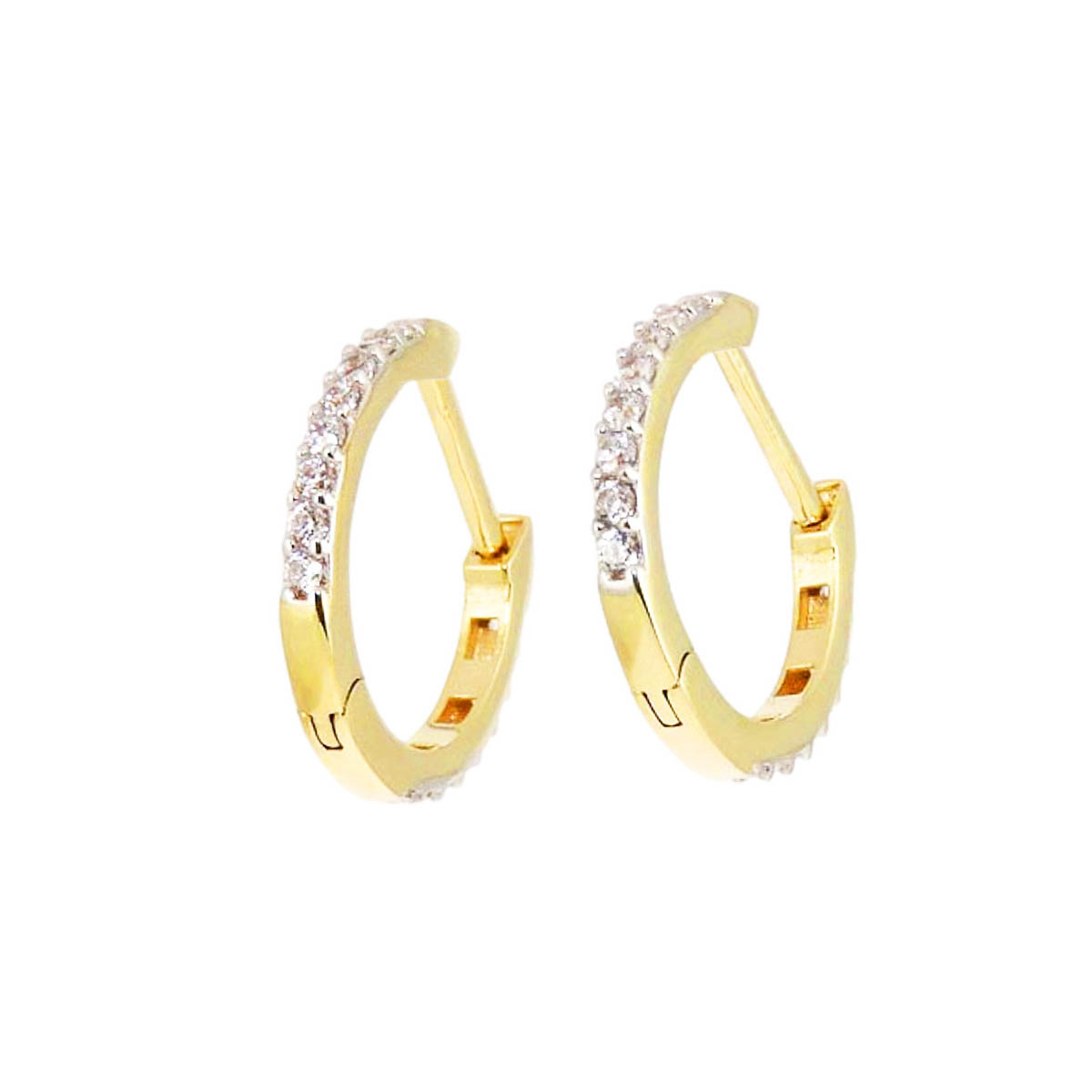 Enhance your everyday elegance with these stunning gold and cubic zirconia huggies. Crafted from 14K yellow gold, these earrings offer a warm, luxurious glow. The sparkling cubic zirconia gemstones are expertly cut to maximize brilliance and fire, adding a touch of glamour to any look. Designed to fit comfortably and securely, they are perfect for both casual and formal occasions. Whether worn alone or layered with other jewelry, these huggies bring a sophisticated sparkle to your style. Elevate your jewelry collection with this timeless and versatile piece. With the distinction of John Lyras certification.