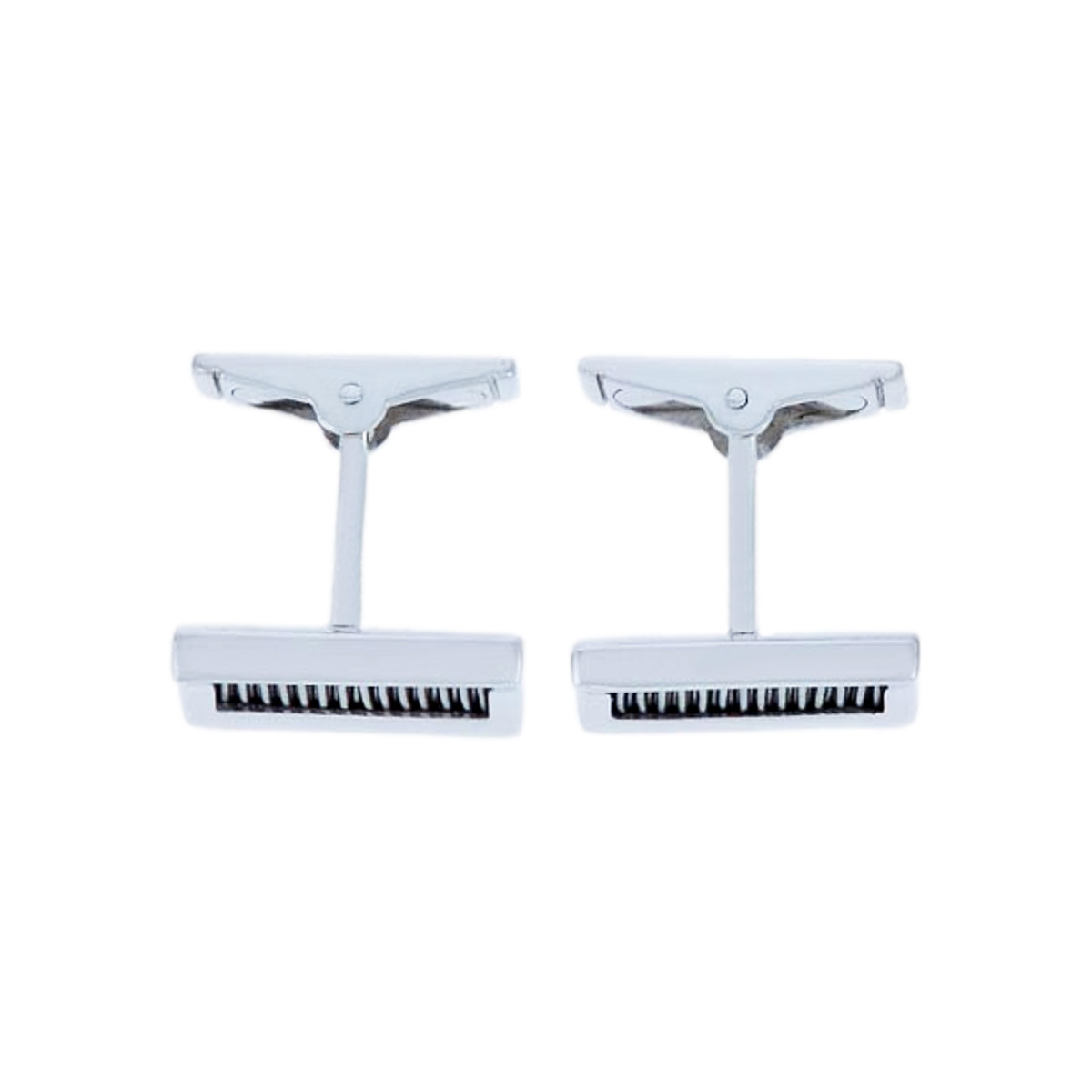 Discover timeless elegance with these handcrafted 18K white gold cufflinks. Featuring a sleek and minimalist design, they showcase the exquisite craftsmanship and refined style that elevate any formal attire. Crafted from premium 18 karat white gold, these cufflinks offer a luxurious finish and durable quality. Their polished surface and sophisticated silhouette make them a perfect accessory for special occasions or professional settings. Elevate your style with these classic and versatile gold cufflinks that combine modern sophistication with exceptional craftsmanship for a truly distinguished look. With the distinction of John Lyras certification.