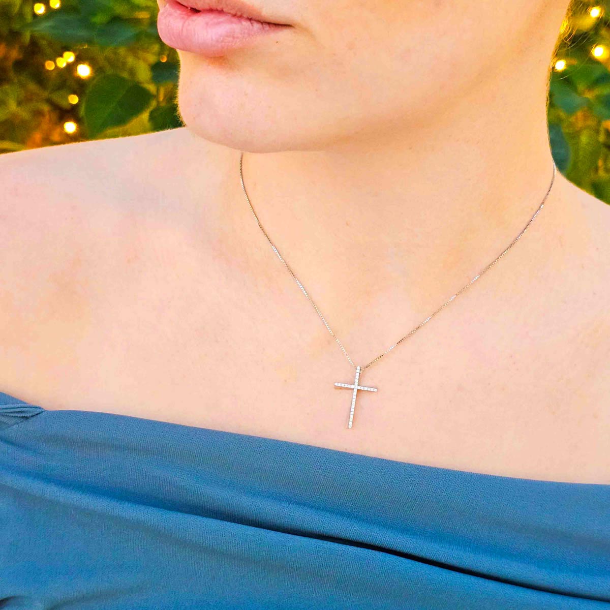 Discover timeless elegance with our gold & diamond cross & chain. Crafted in 18K gold, available in rose gold or white gold or yellow gold, this exquisite piece features a beautifully detailed cross adorned with sparkling round brilliant cut diamonds. The delicate chain complements the cross perfectly, creating a versatile accessory for both everyday wear and special occasions. Whether you choose the warm hue of rose gold, the classic appeal of white gold, or the vibrant tone of yellow gold, this jewelry piece offers a luxurious touch of faith and style. Elevate your jewelry collection with this stunning design that combines craftsmanship and brilliance. With the distinction of John Lyras certification.