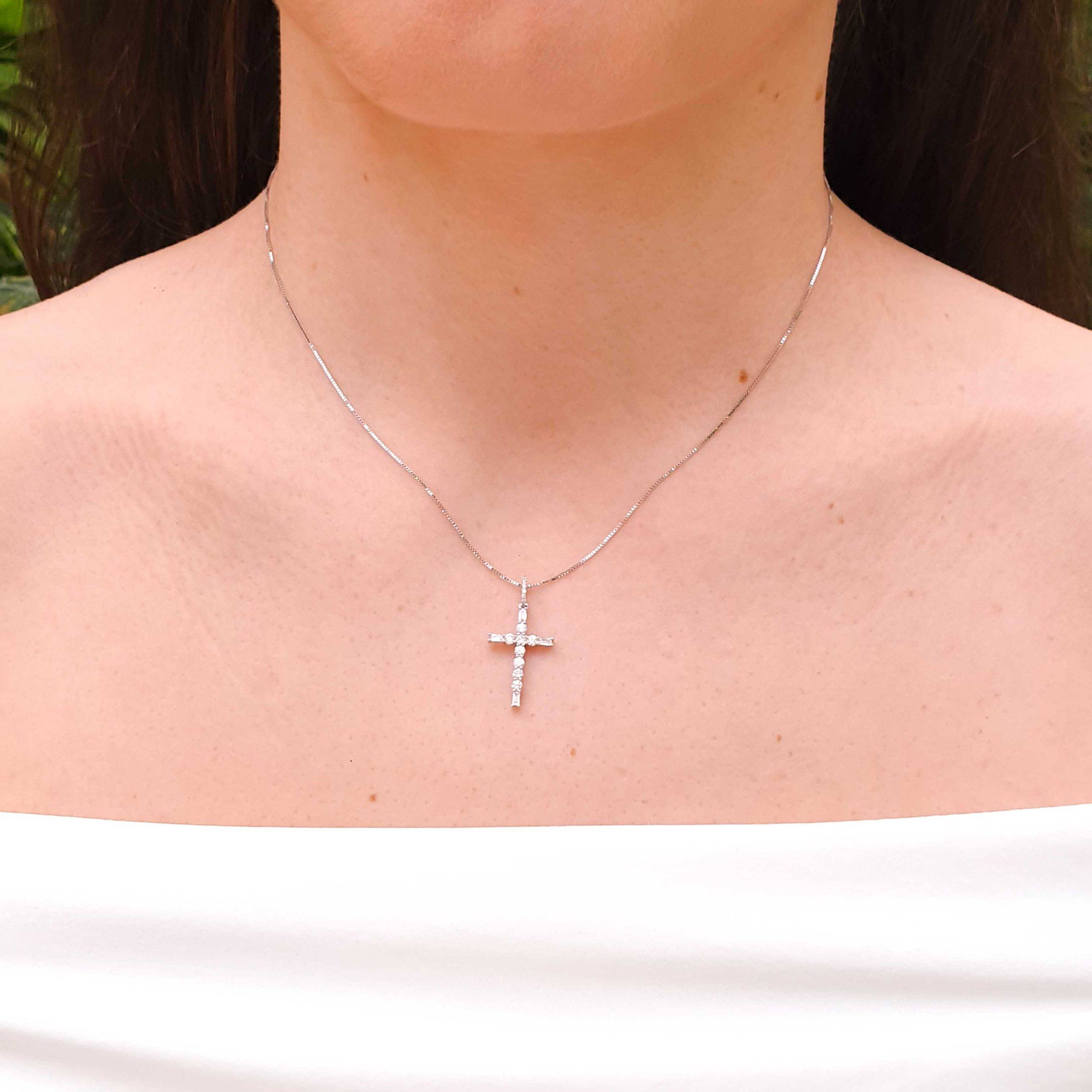 Discover timeless elegance with this stunning gold and diamond cross and chain. Crafted from 18K white gold, the chain features a sleek and durable design that complements any style. The cross pendant is beautifully accented with sparkling round-cut diamonds, adding a touch of luxury and sophistication. Perfect for everyday wear or special occasions, this jewelry piece seamlessly combines classic craftsmanship with modern allure. Elevate your collection with this exquisite accessory that symbolizes faith and elegance, making it an ideal gift or personal keepsake.