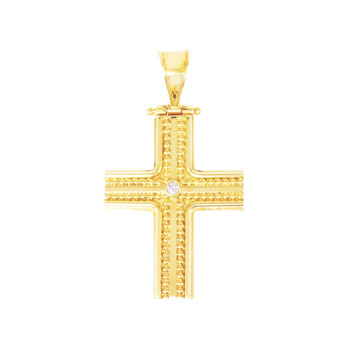 Discover timeless elegance with this exquisite gold and diamond cross pendant crafted from 18K yellow gold. Featuring a beautifully detailed cross design, it is adorned with sparkling round-cut diamonds that add a touch of brilliance and sophistication. Perfect for everyday wear or special occasions, this jewelry piece combines classic craftsmanship with modern luxury. The warm hue of the 18K yellow gold complements the dazzling diamonds, creating a stunning accessory that symbolizes faith and style. Elevate your jewelry collection with this elegant cross pendant that seamlessly blends durability and beauty. With the distinction of John Lyras certification.