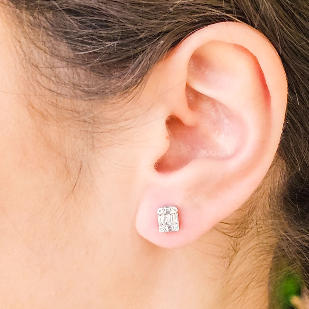 Discover timeless elegance with these stunning gold and diamond earrings crafted in 18K white gold. Featuring a captivating combination of baguette cut diamonds and round brilliant cut diamonds, they showcase a perfect blend of modern sophistication and classic sparkle.