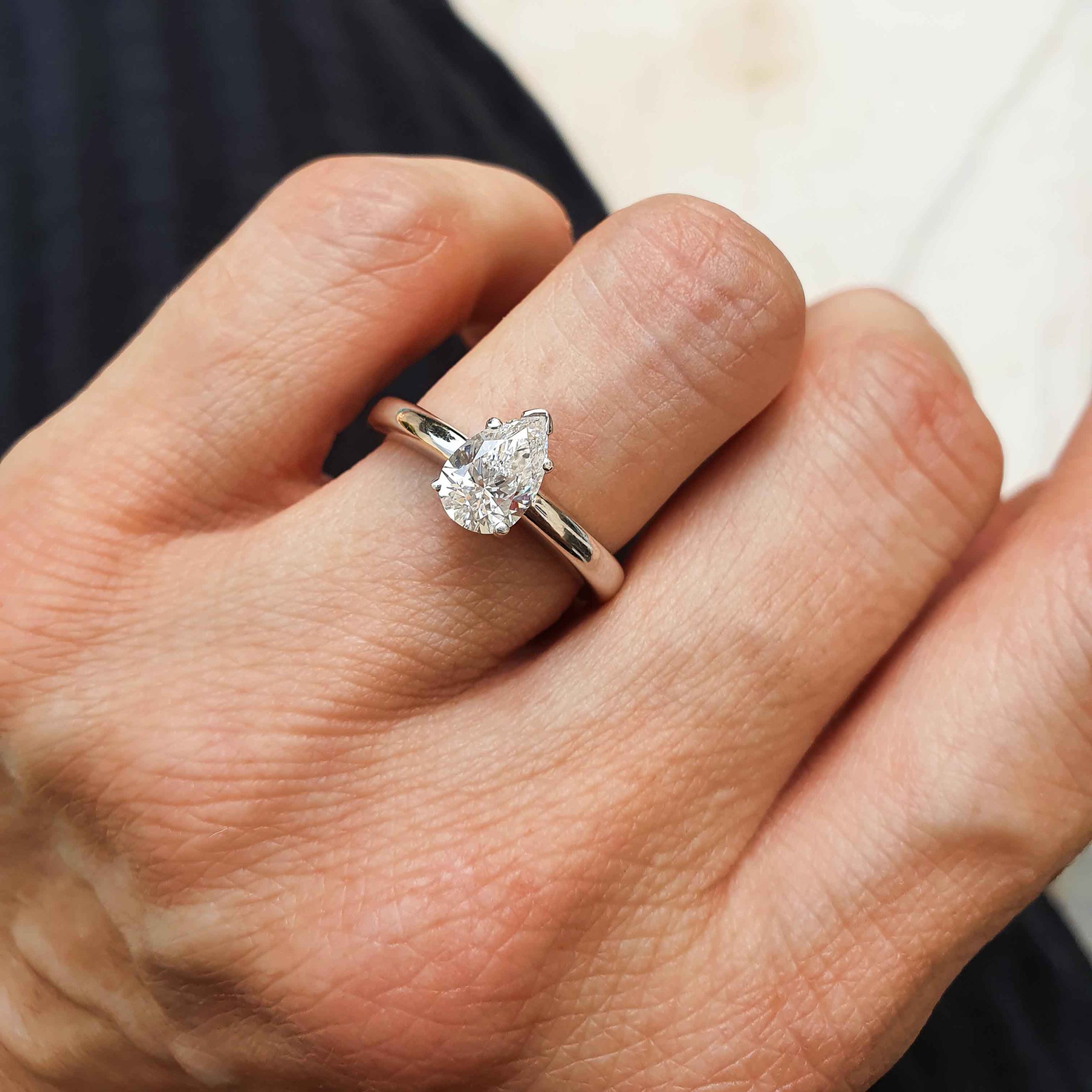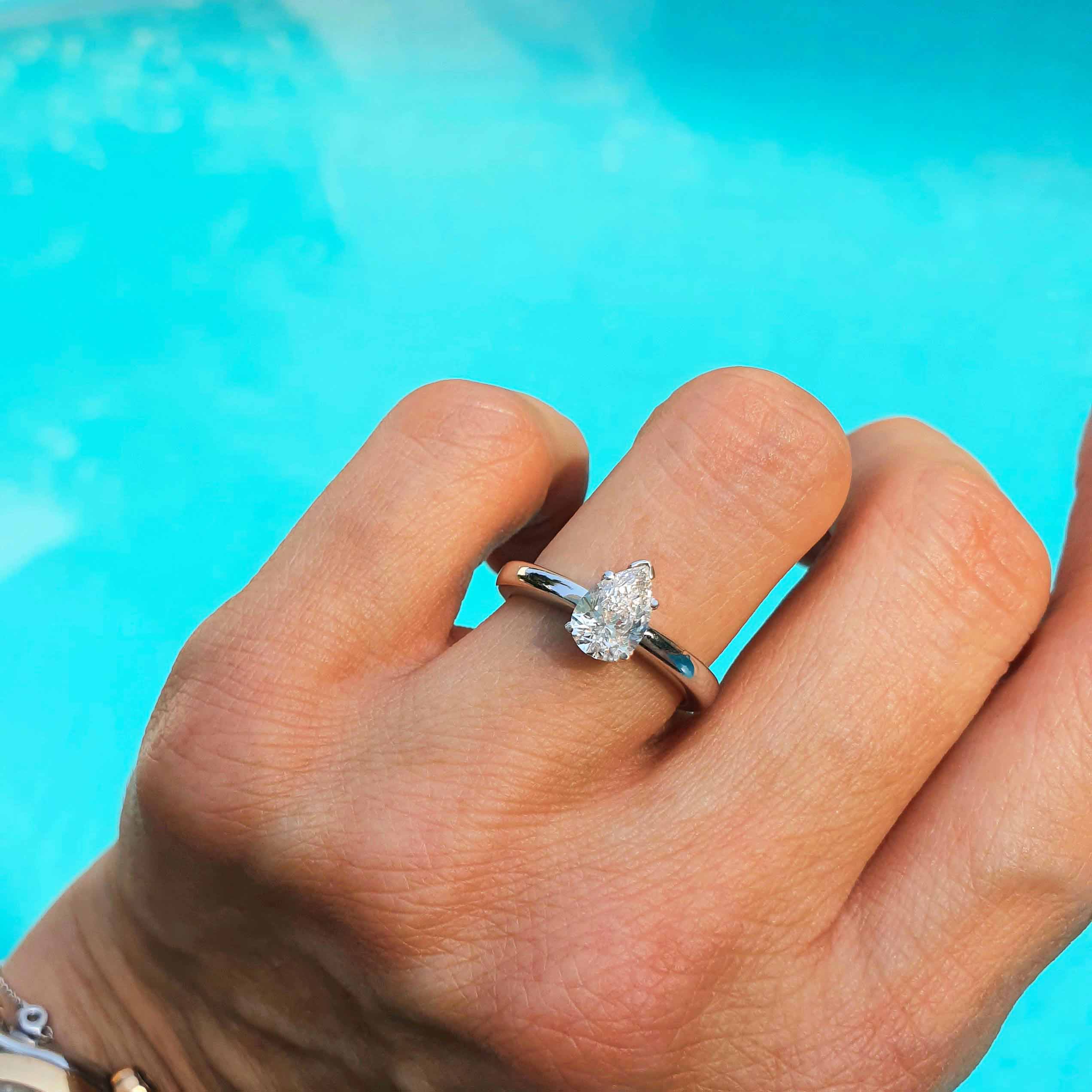 Discover timeless elegance with this stunning engagement ring featuring a beautiful pear-shaped diamond set in 18K white gold. Crafted from high-quality white gold 18K, it offers a luxurious and durable setting that complements the brilliance of the pear-shaped diamond. The unique teardrop cut adds a touch of sophistication and grace, making it perfect for celebrating your special moment. Designed to showcase the captivating sparkle and elegance of the gemstone, this engagement ring is an exquisite symbol of love and commitment. Ideal for those seeking a blend of classic beauty and modern style. With the distinction of GIA and John Lyras certifications.