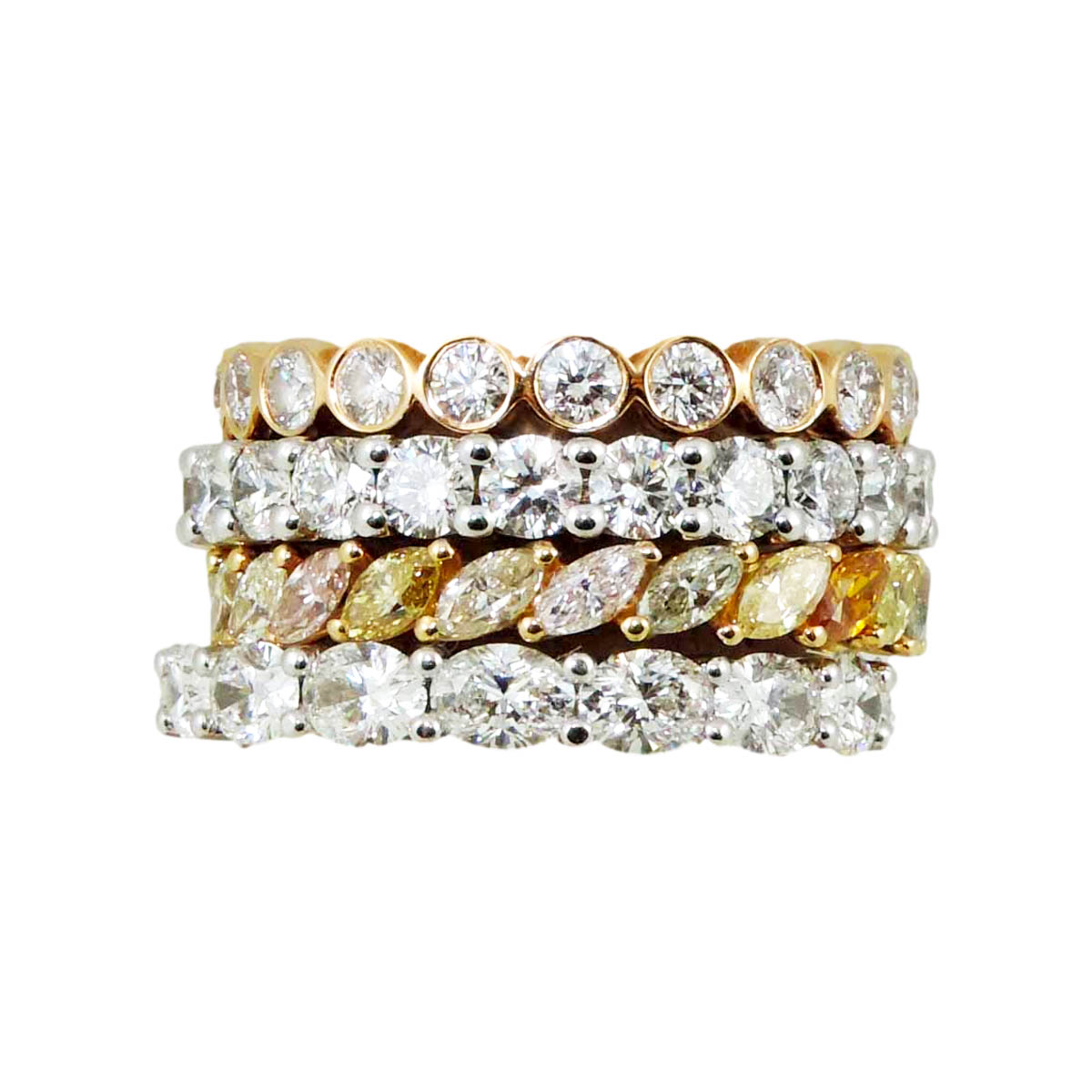 Discover the timeless elegance of the gold and diamond eternity ring crafted in 18 karat white gold. Featuring a continuous row of sparkling round brilliant cut diamonds, this ring symbolizes everlasting love and commitment. Its sleek design offers a versatile and sophisticated aesthetic, perfect for stacking or wearing alone. The high-quality white gold setting enhances the brilliance of the diamonds, creating a dazzling and luxurious appearance. Whether as a meaningful gift or a cherished addition to your jewelry collection, this eternity ring combines classic craftsmanship with modern style for a truly exquisite look.