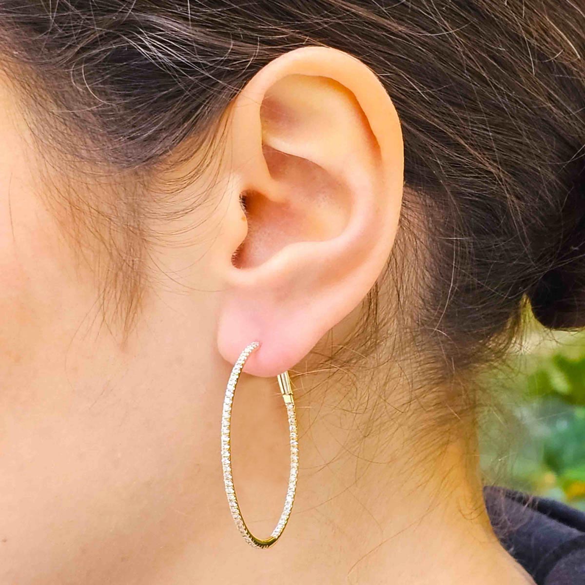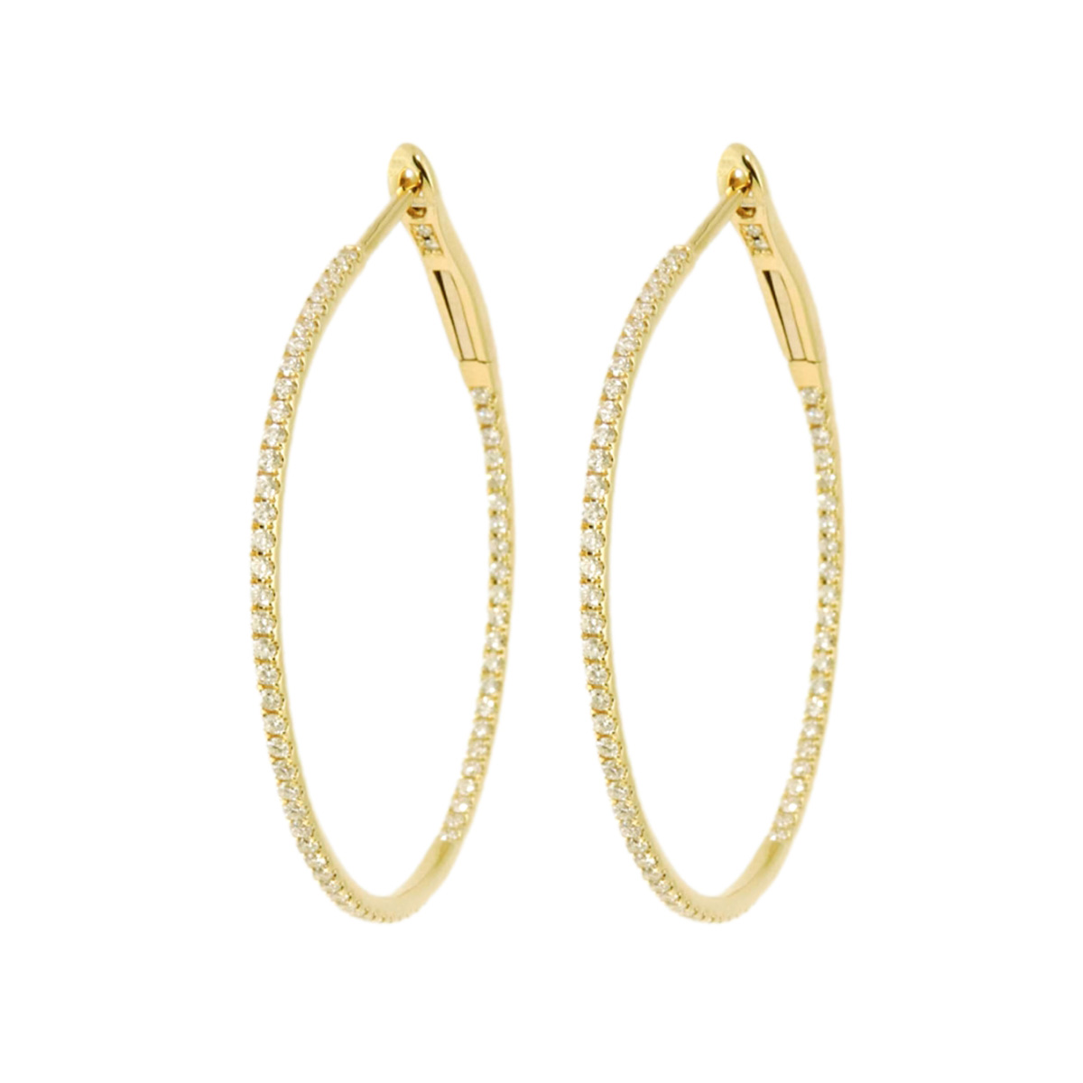 Discover timeless elegance with these stunning gold and diamond hoop earrings crafted from 18K yellow gold. Featuring sparkling round cut diamonds, these hoops exude sophistication and brilliance. Designed to complement any outfit, they offer a perfect balance of luxury and versatility. The high-quality yellow gold provides durability and a warm glow, while the shimmering diamonds add a touch of glamour. Ideal for both everyday wear and special occasions, these earrings are a beautiful expression of style and craftsmanship. Elevate your jewelry collection with this classic and radiant accessory. With the distinction of John Lyras certification.