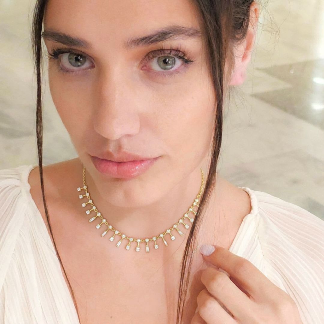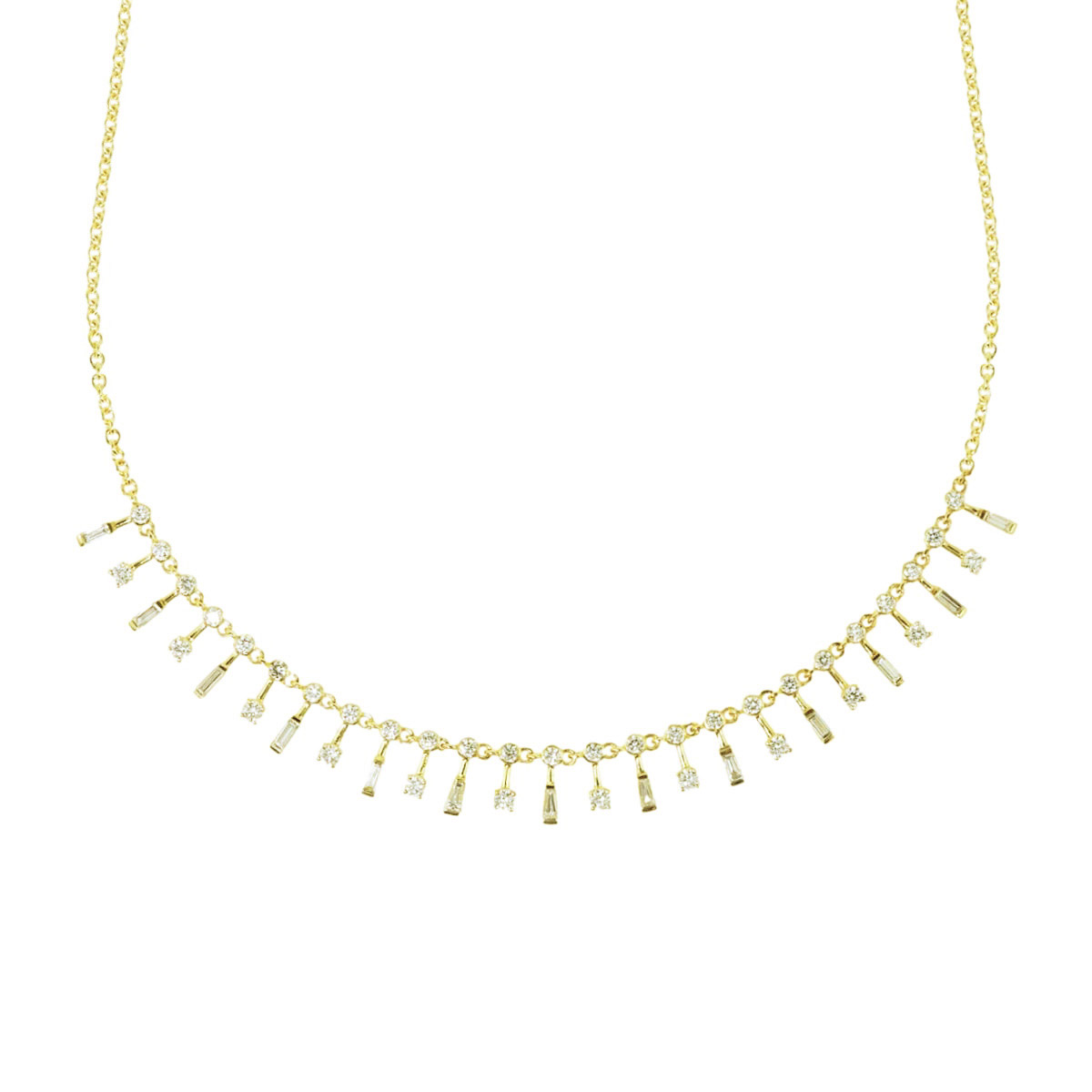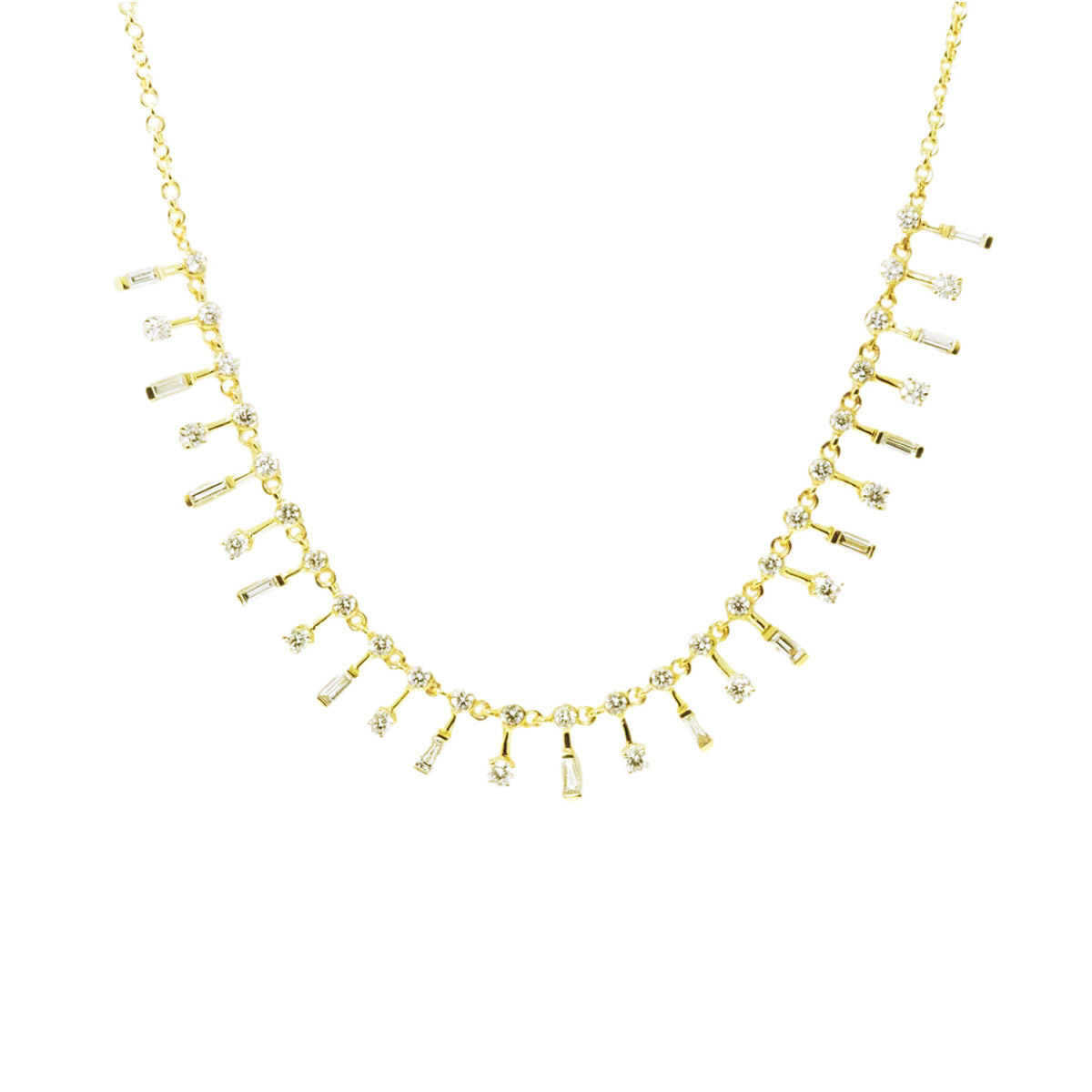 Discover timeless elegance with this stunning gold and diamond necklace crafted from 18 karat yellow gold. Featuring sparkling round-cut diamonds meticulously set to enhance their brilliance, this necklace adds a touch of sophistication to any ensemble.