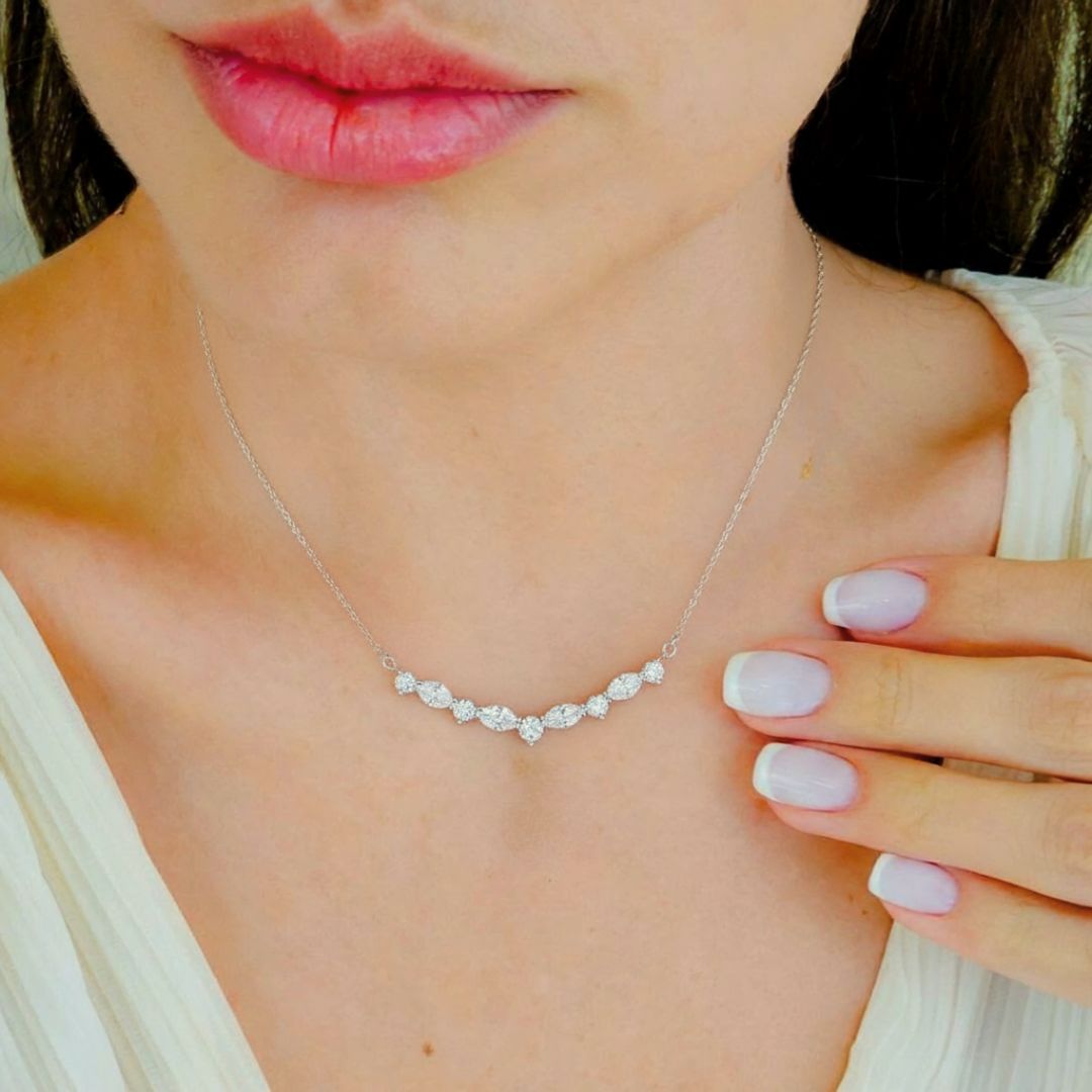 Discover timeless elegance with this stunning gold and diamond necklace crafted from 18K white gold. Featuring a delicate chain adorned with sparkling round-cut diamonds, this piece exudes sophistication and luxury. The radiant brilliance of the diamonds beautifully complements the cool shimmer of the white gold setting, making it perfect for special occasions or everyday wear. Designed to elevate any outfit, this necklace combines exquisite craftsmanship with classic beauty. Indulge in a piece that offers both style and grace, adding a touch of brilliance to your jewelry collection. With the distinction of John Lyras certification.
