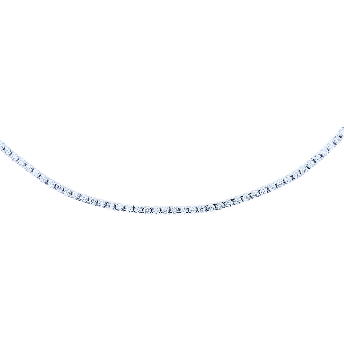 Discover timeless elegance with this gold and diamond tennis necklace crafted in 18K white gold. Featuring a stunning row of round brilliant cut diamonds, it offers a sophisticated sparkle that enhances any ensemble.