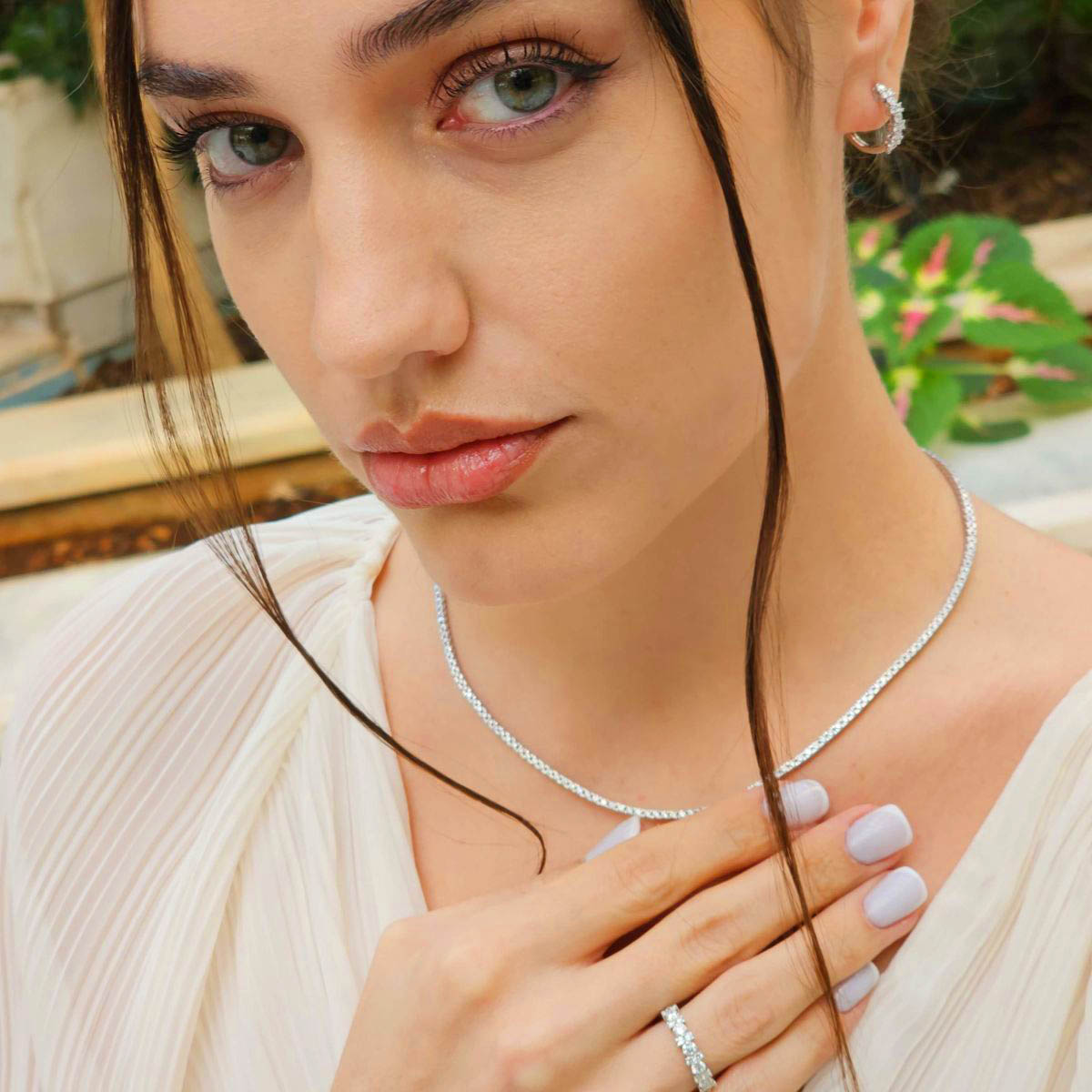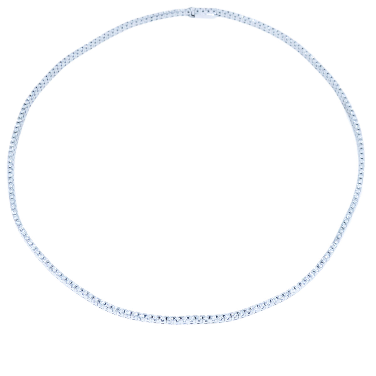 Discover timeless elegance with this gold and diamond tennis necklace crafted in 18K white gold. Featuring a stunning row of round brilliant cut diamonds, it offers a sophisticated sparkle that enhances any ensemble. The sleek design combines luxury and versatility, perfect for both everyday wear and special occasions. Expertly crafted with high-quality materials, this necklace is a dazzling expression of refined style. Elevate your jewelry collection with this exquisite piece that seamlessly blends classic beauty with modern craftsmanship. Perfect for celebrating life’s special moments or adding a touch of glamour to your look.
