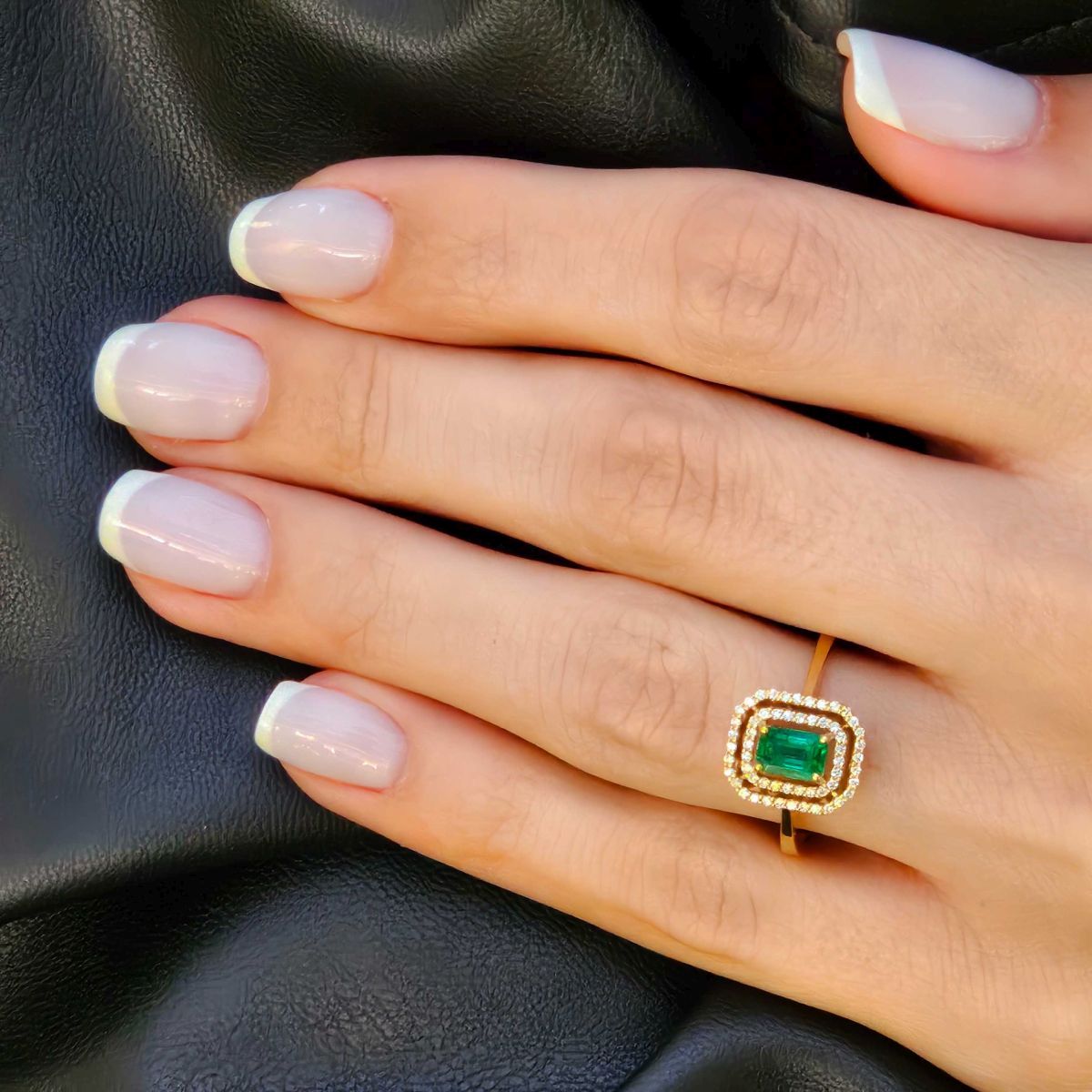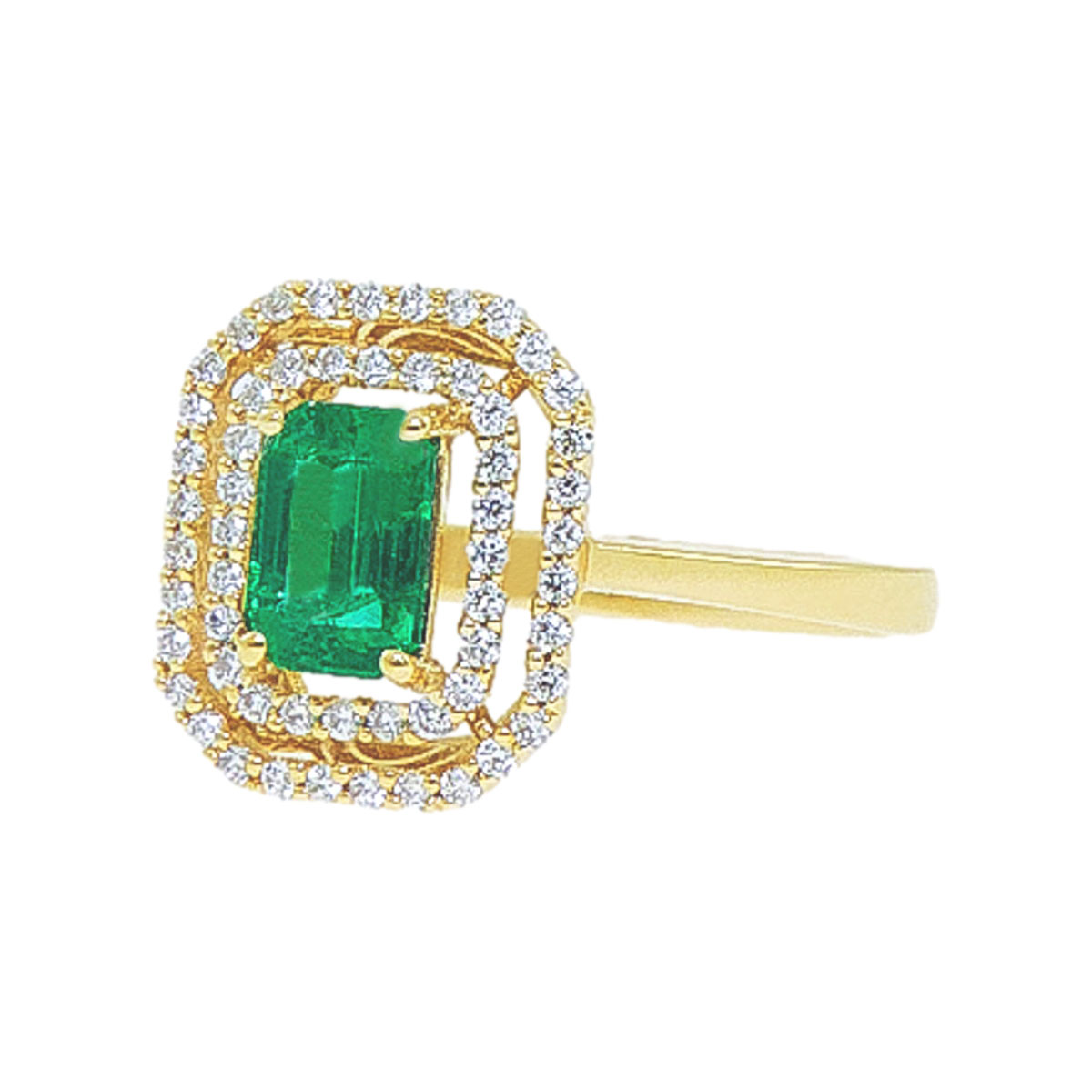 Discover timeless elegance with this exquisite gold, emerald, and diamond ring crafted from 18K yellow gold. Featuring vibrant emeralds in a stunning cut and sparkling diamonds, this piece embodies luxury and sophistication. Its intricate design highlights the rich green hue of the emeralds complemented by the brilliance of the diamonds, creating a captivating look suitable for special occasions or everyday elegance. Crafted with high-quality materials, this ring offers a perfect blend of classic charm and modern allure. Elevate your jewelry collection with this remarkable piece that symbolizes grace and refined style. With the distinction of John Lyras certification.