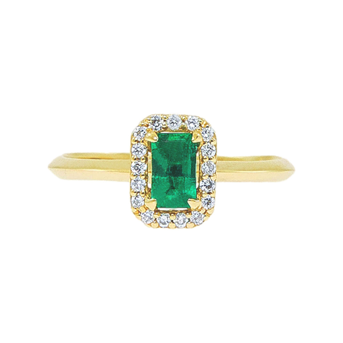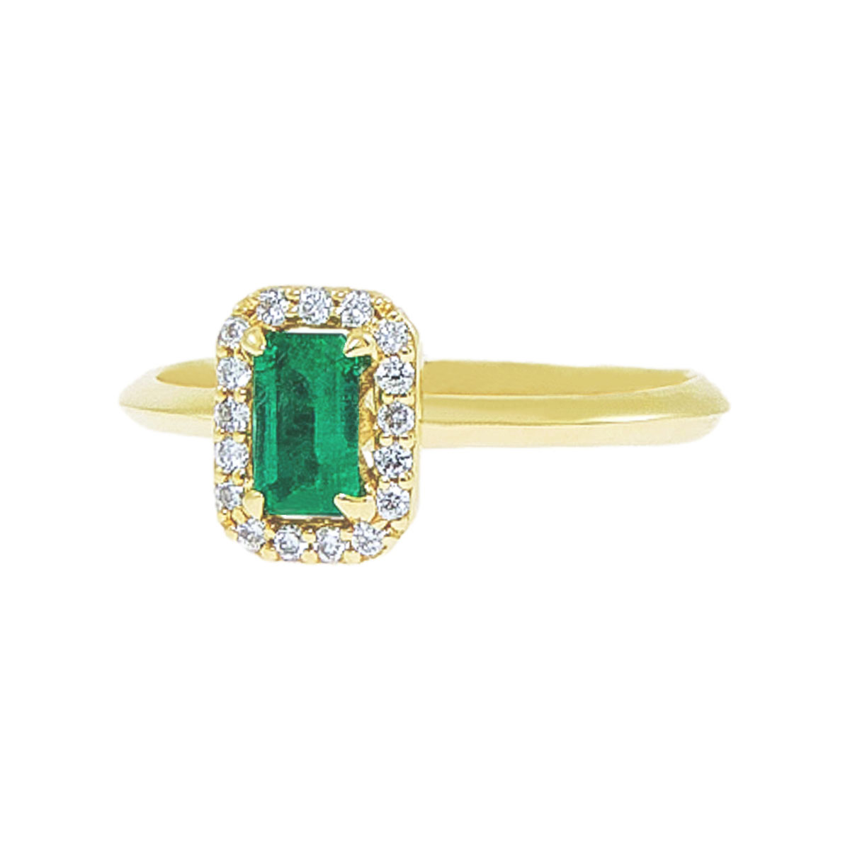 Discover timeless elegance with this stunning gold, emerald, and diamond ring crafted in 18K yellow gold. Featuring a vibrant emerald cut gemstone as the centerpiece, complemented by sparkling round-cut diamonds that add brilliance and sophistication. Designed to enhance any occasion, this luxurious ring combines the richness of yellow gold with the captivating allure of emerald and diamond gemstones. Perfect for those seeking a statement piece that embodies elegance and style. Elevate your jewelry collection with this exquisite ring, a symbol of beauty and craftsmanship. With the distinction of John Lyras certification.