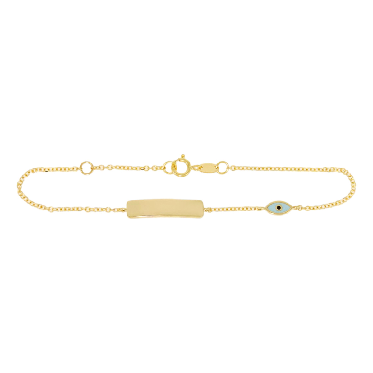 Discover timeless elegance with this gold and enamel evil eye id bracelet crafted in 14K yellow gold. Featuring a sleek and modern design, this piece combines high-quality craftsmanship with a stunning enamel evil eye motif for a subtle touch of protection and style. The smooth, polished gold band offers a comfortable fit and enduring shine, making it perfect for everyday wear or layered with other jewelry. Elevate your accessories collection with this sophisticated and meaningful bracelet, showcasing expert craftsmanship and a contemporary aesthetic that complements any outfit. With the distinction of John Lyras certification.
