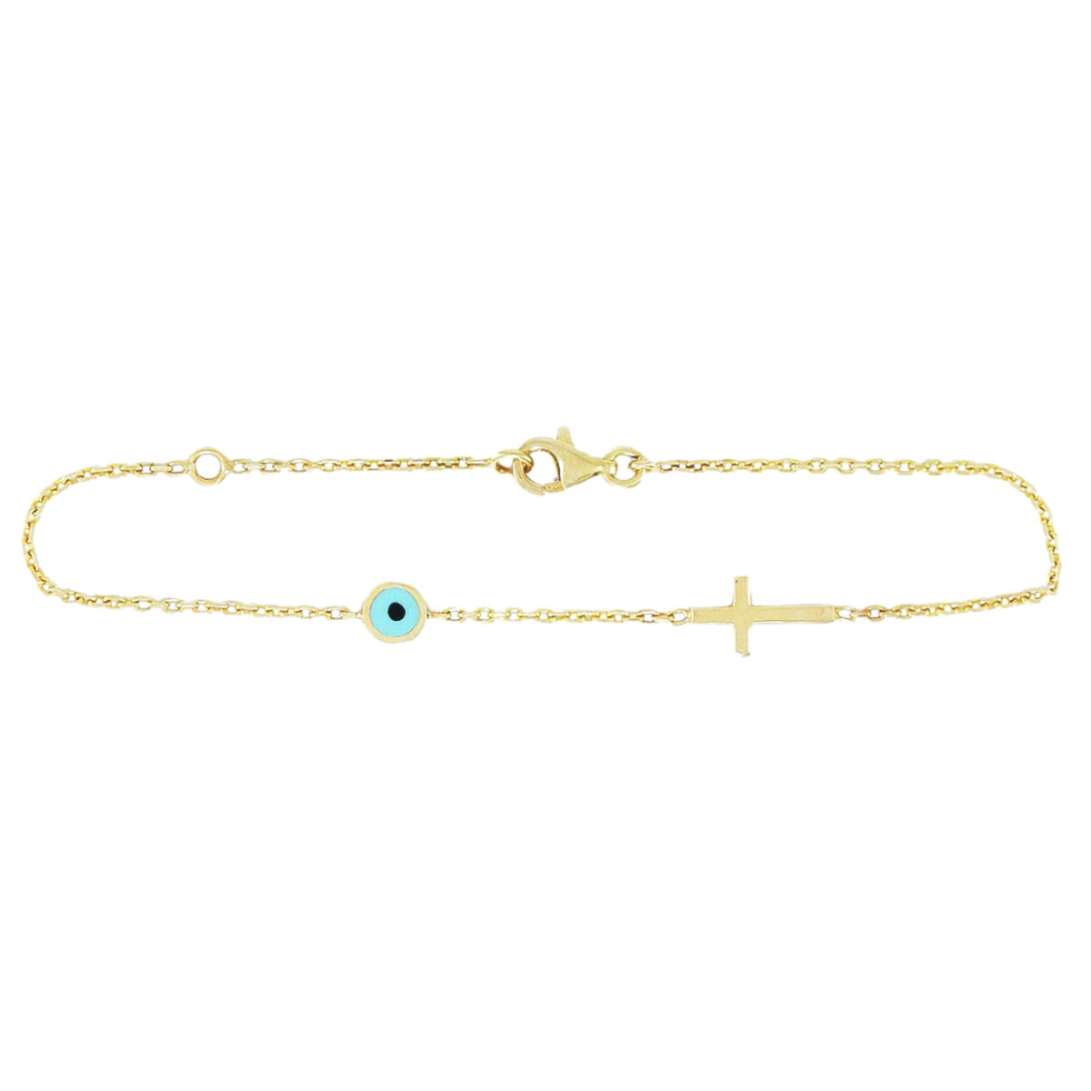 Discover the timeless elegance of our gold and enamel evil eye bracelet crafted in 14K yellow gold. Featuring intricate craftsmanship, the design showcases a detailed enamel evil eye motif that symbolizes protection and good fortune. The smooth, polished gold band offers a refined and versatile style that complements any outfit. Expertly designed with attention to detail, this bracelet combines cultural symbolism with modern sophistication. Elevate your jewelry collection with this striking piece that embodies both artistry and meaningful tradition, making it a perfect accessory for everyday wear or special occasions. With the distinction of John Lyras certification.
