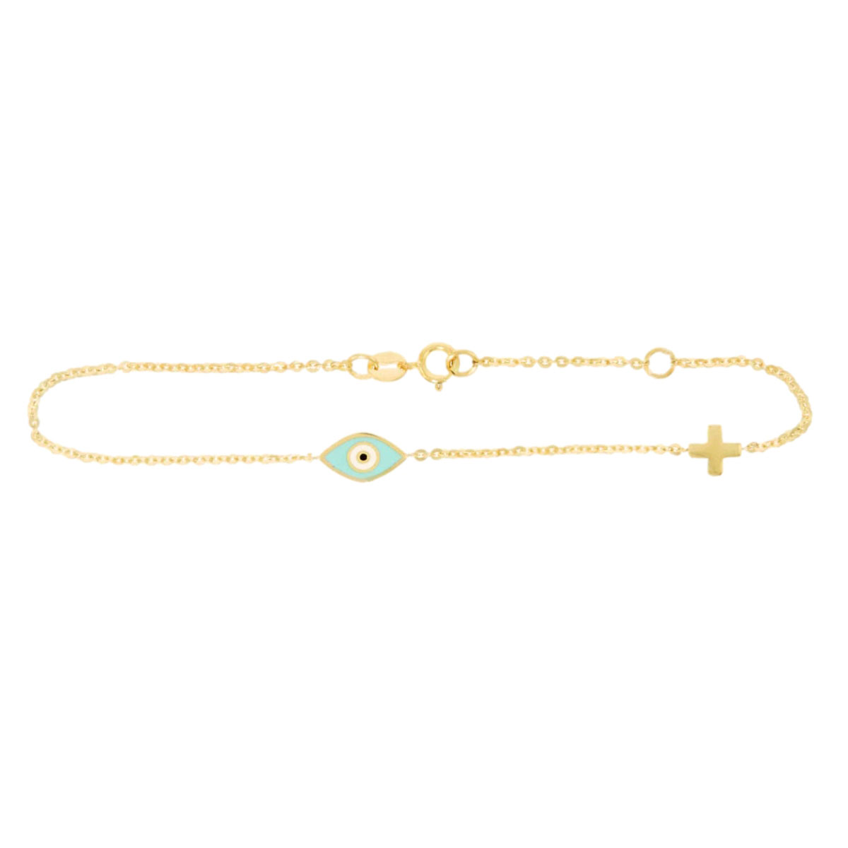 Discover the timeless elegance of our gold & evil eye enamel bracelet crafted in luxurious 14K yellow gold. Featuring a sleek, minimalist design accentuated by a vibrant enamel evil eye charm, this bracelet seamlessly blends modern style with cultural symbolism. Meticulously crafted with high-quality gold, it showcases superior craftsmanship and attention to detail. Perfect for adding a touch of protection and sophistication to any ensemble, this bracelet offers both a meaningful statement piece and everyday luxury. Elevate your jewelry collection with this exquisite gold bracelet that combines artistry and symbolism effortlessly. With the distinction of John Lyras certification.