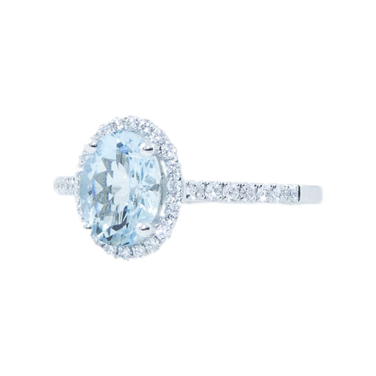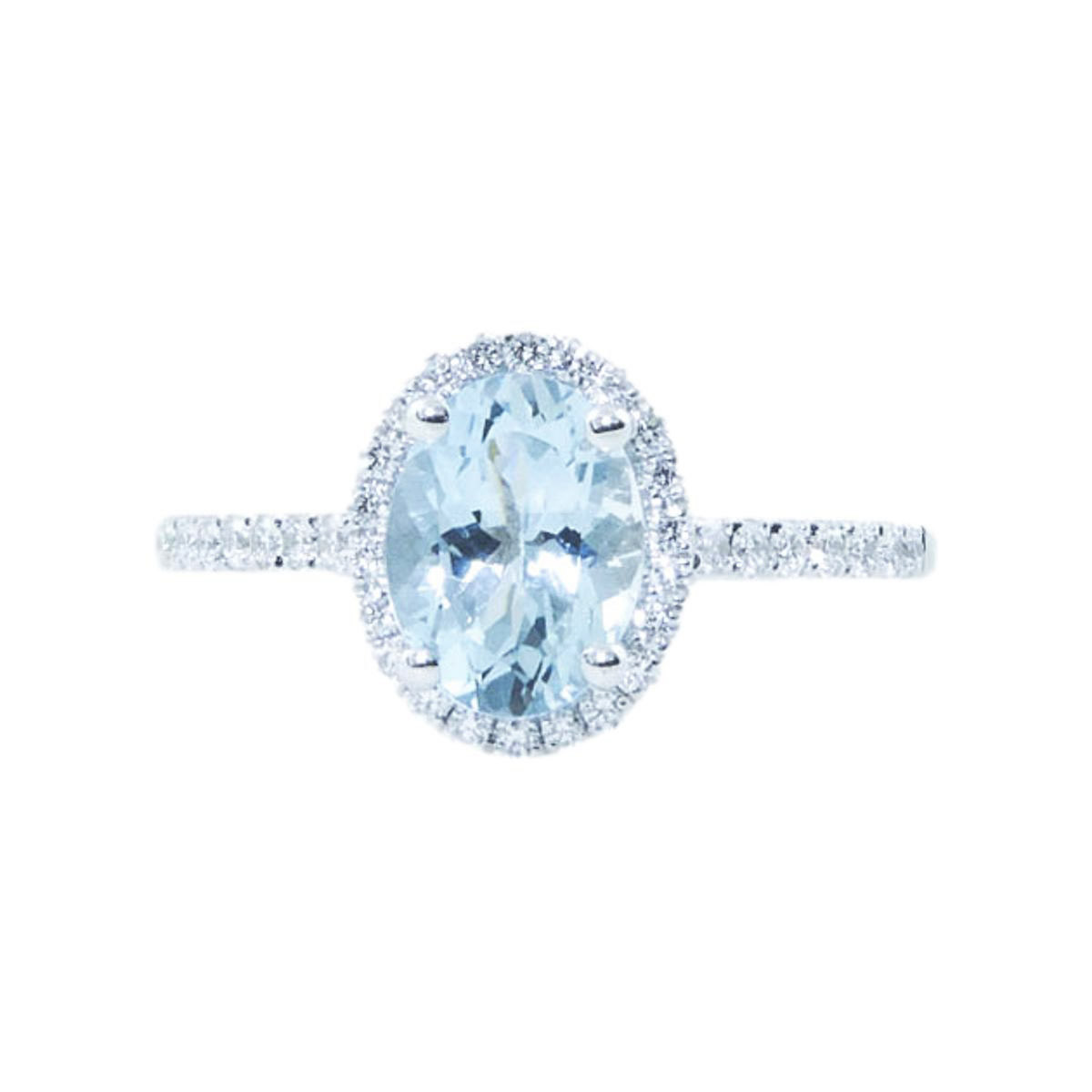 1.11ct oval cut aquamarine & 0.26ct round brilliant cut diamonds