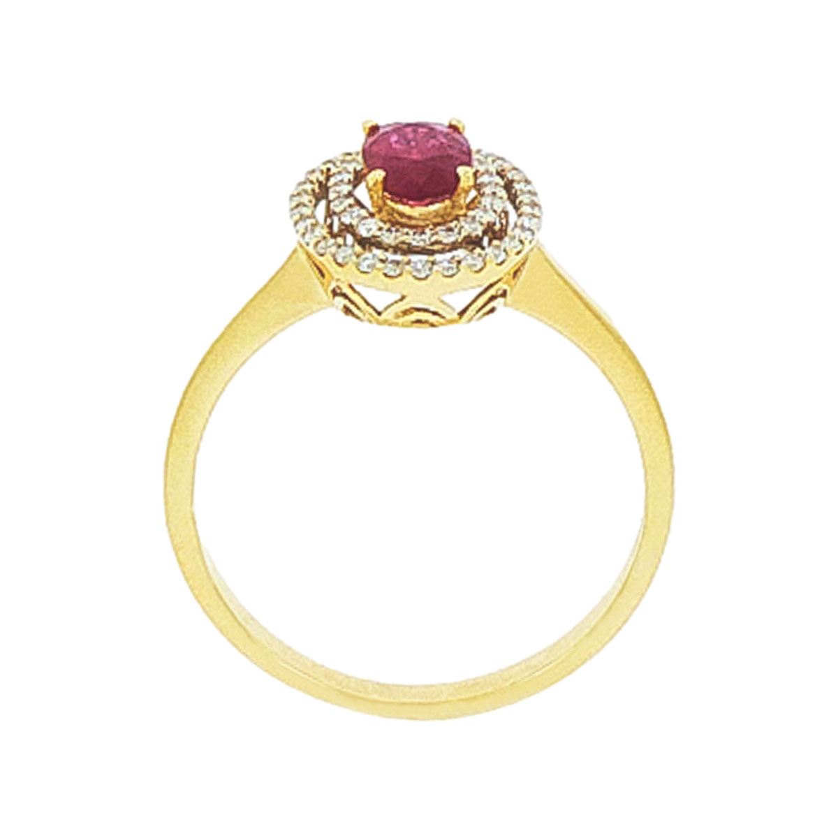 Discover timeless elegance with this exquisite gold, ruby and diamond ring crafted from 18K yellow gold. Featuring a stunning array of vibrant rubies and sparkling diamonds, each gemstone is expertly cut to enhance their natural brilliance.