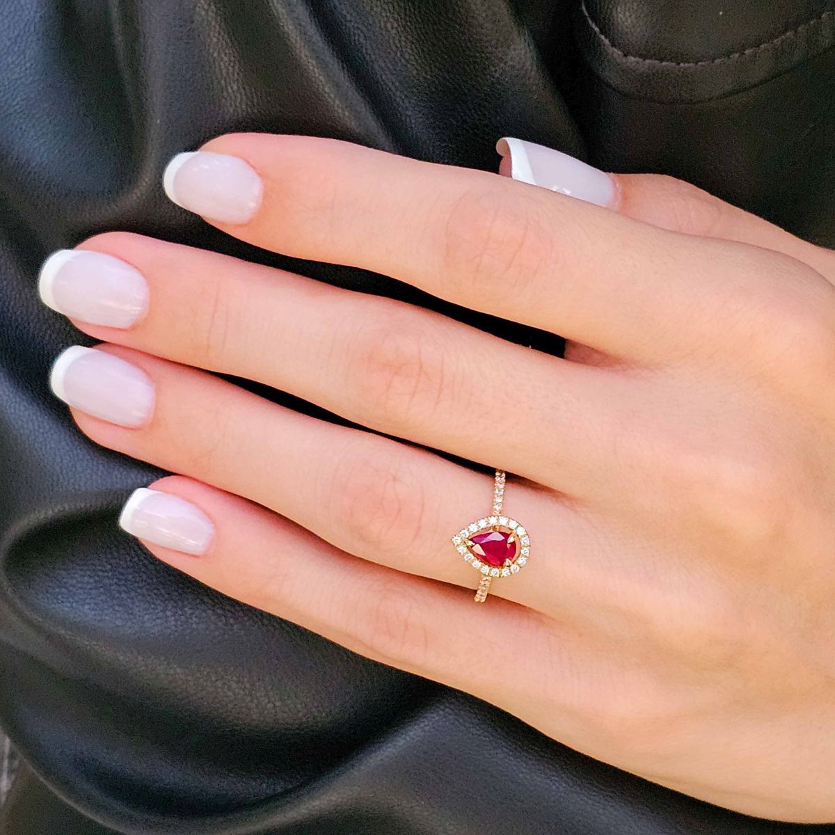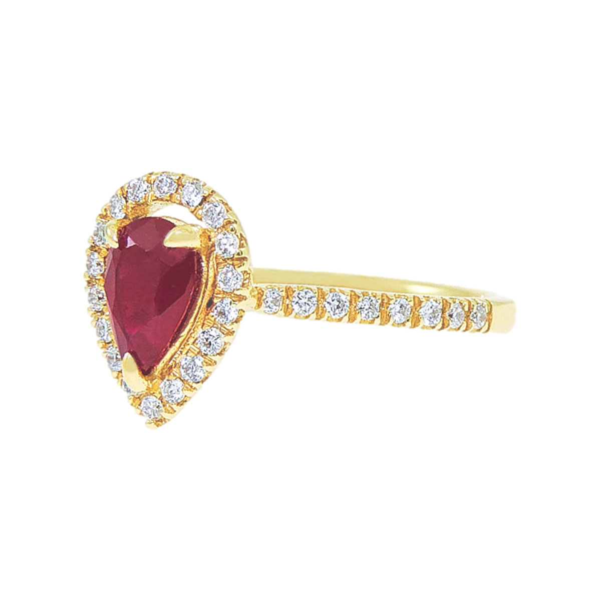0.66ct pear cut ruby & 0.23ct round brilliant cut diamonds