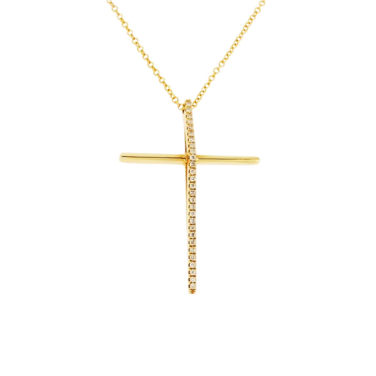 Discover the perfect blend of elegance and faith with our gold & diamond cross and chain. Crafted in 18K gold, available in rose gold or white gold or yellow gold, this exquisite jewelry piece features sparkling diamonds that add a touch of brilliance. The delicate cross pendant is complemented by a matching chain, creating a versatile accessory suitable for everyday wear or special occasions. Whether you choose the warm hue of rose gold, the classic appeal of white gold, or the timeless beauty of yellow gold, this piece offers a luxurious expression of style and spirituality. With the distinction of John Lyras certification.