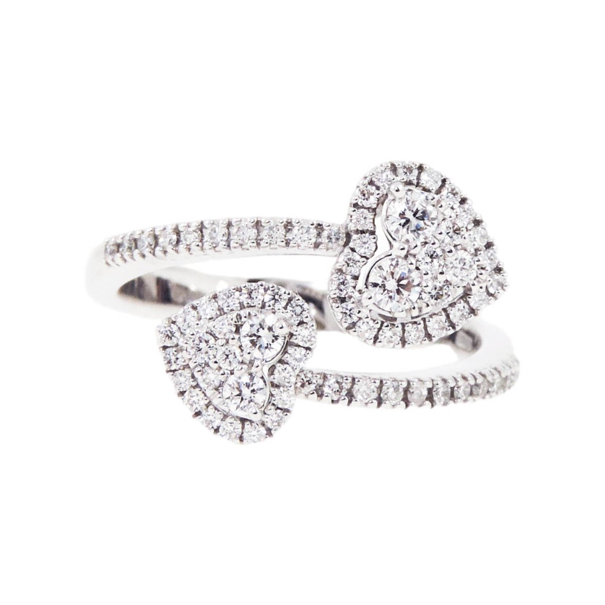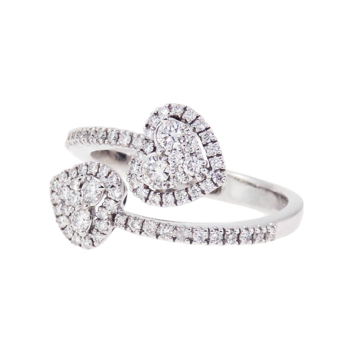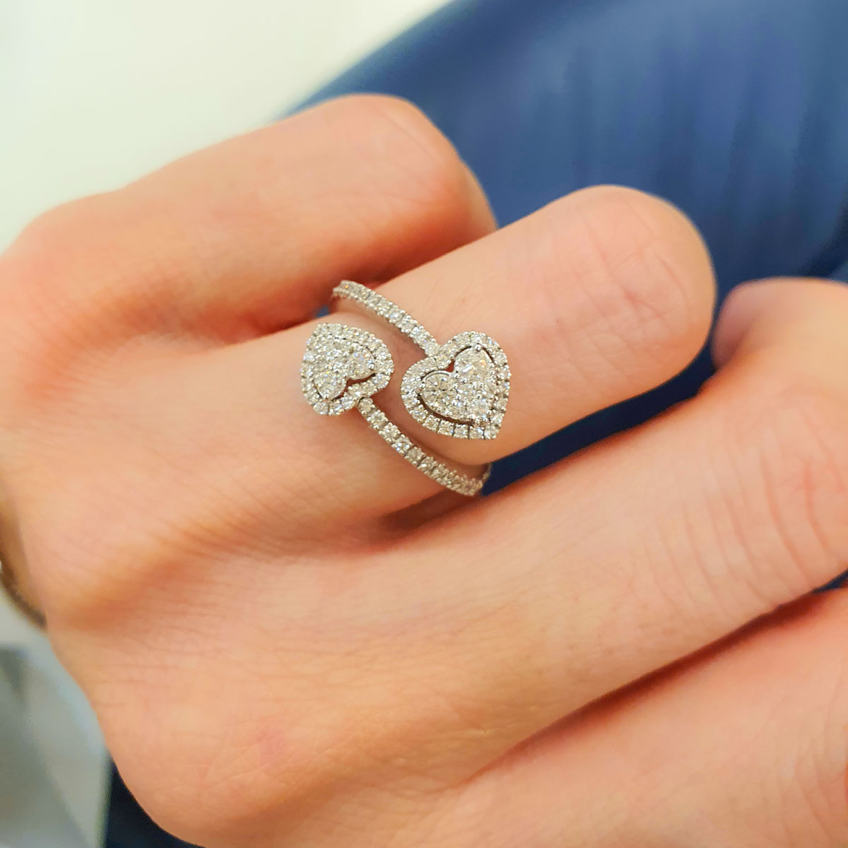 Χρυσό Δαχτυλίδι Δίδυμες Καρδιές με Διαμάντια