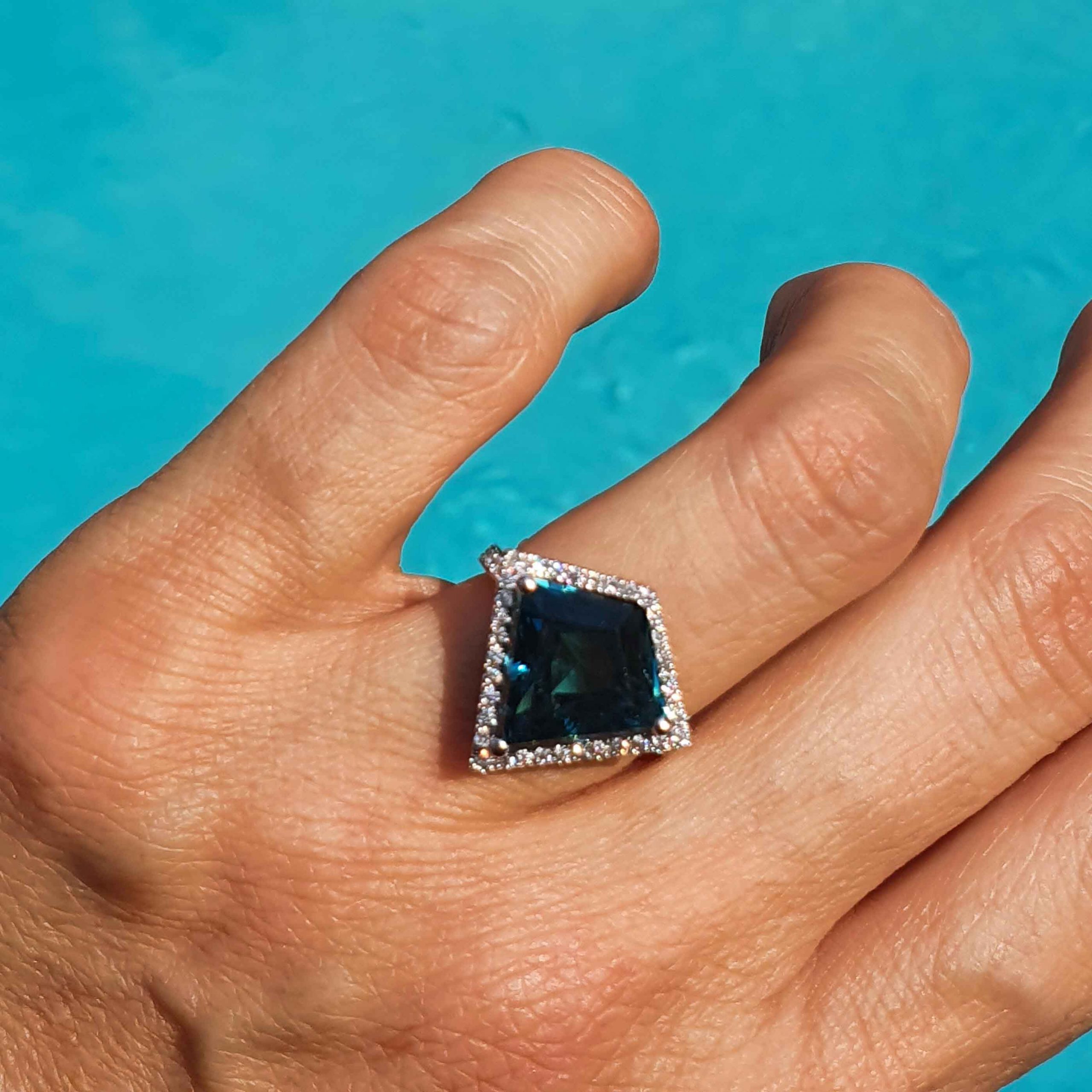 | Total Gemstone Weight | 6.42ct μπλε τουρμαλίνη κοπής αετού & 0.37ct round brilliants |
