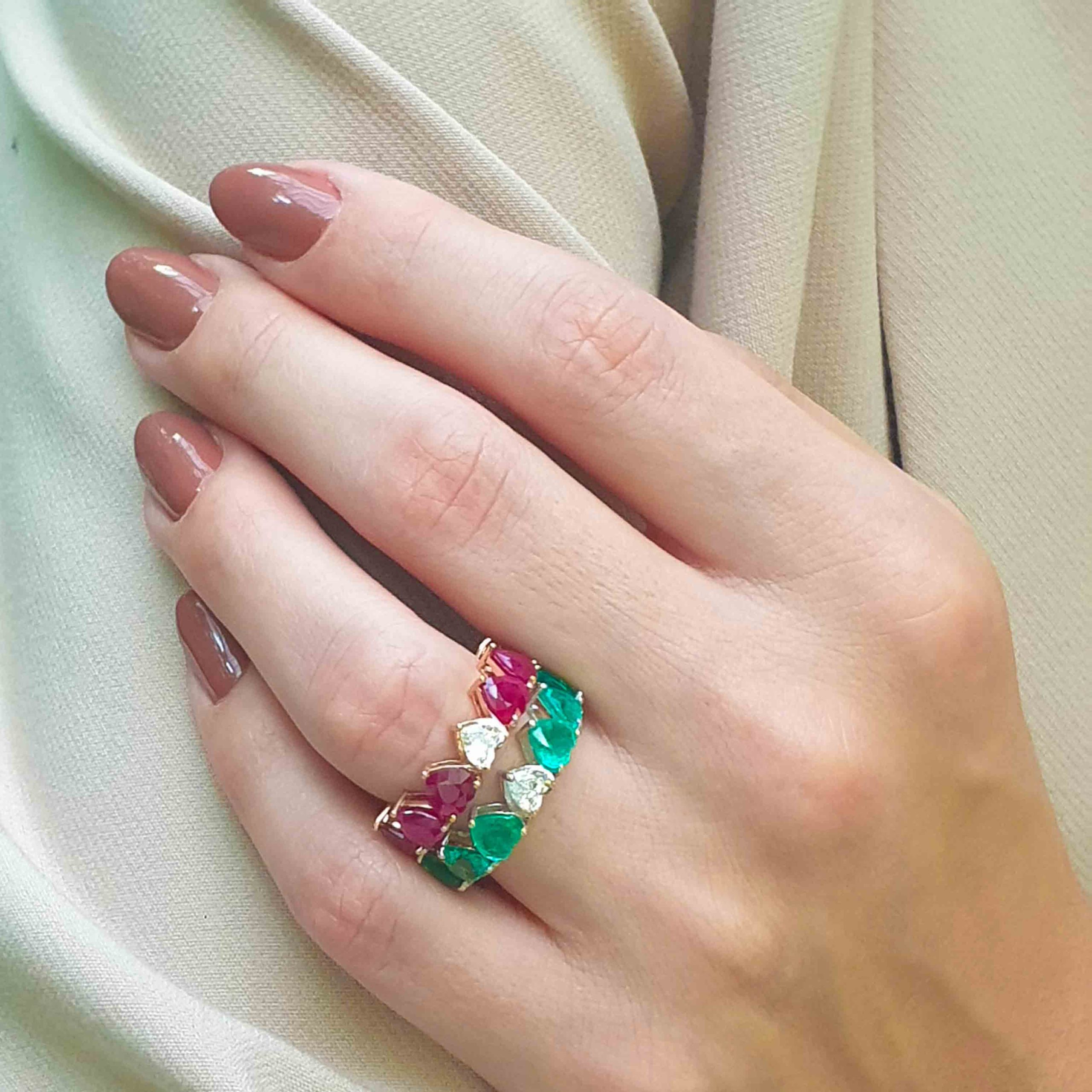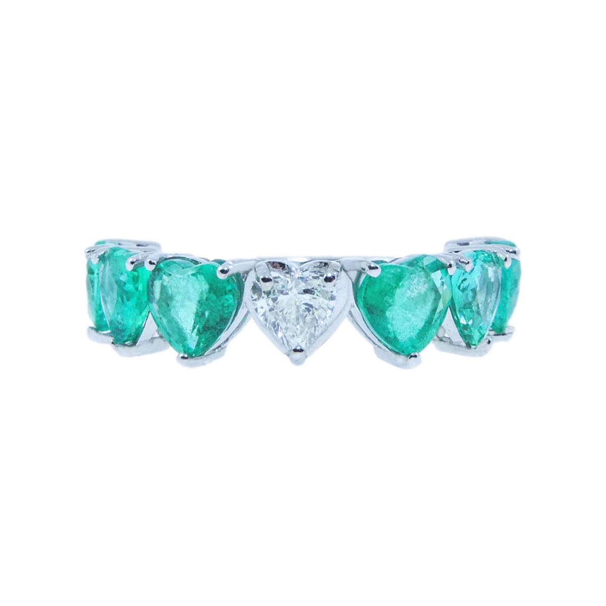 0.31ct διαμάντι σε σχήμα καρδιάς & 3.22ct σμαράγδια σε σχήμα καρδιάς