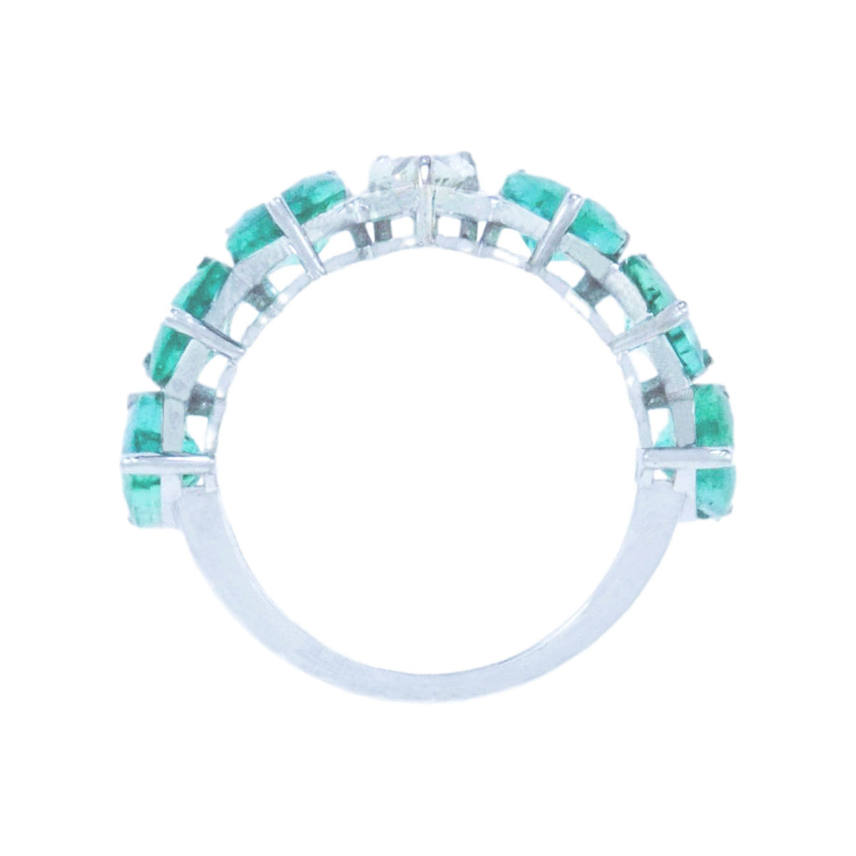 Χρυσό Δαχτυλίδι Μισόβερο με Διαμάντι & Σμαράγδια