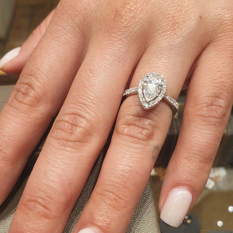 Χρυσό Δαχτυλίδι Μονόπετρο Halo με 1.03ct Emerald Cut Lab Grown Διαμάντι