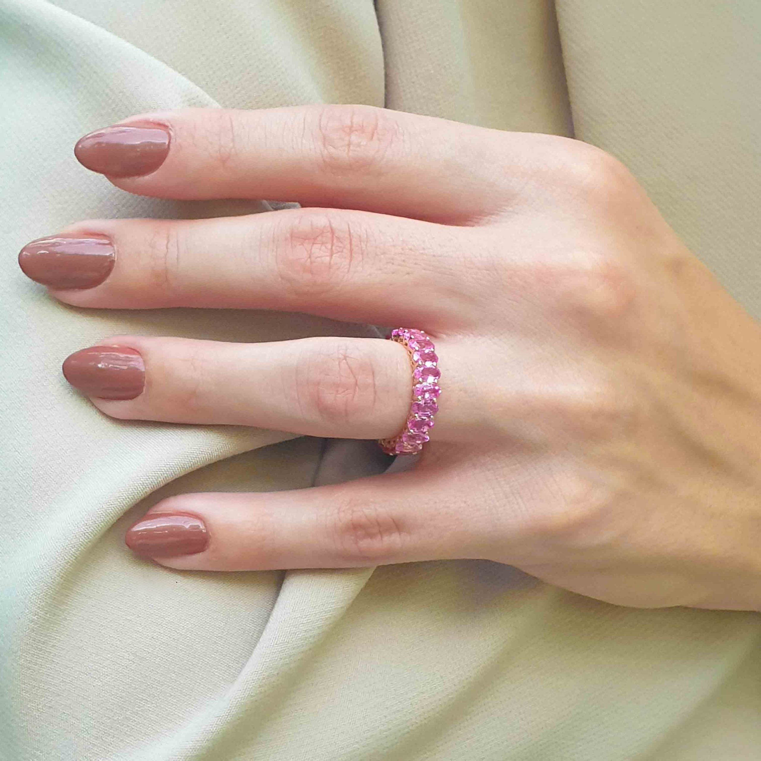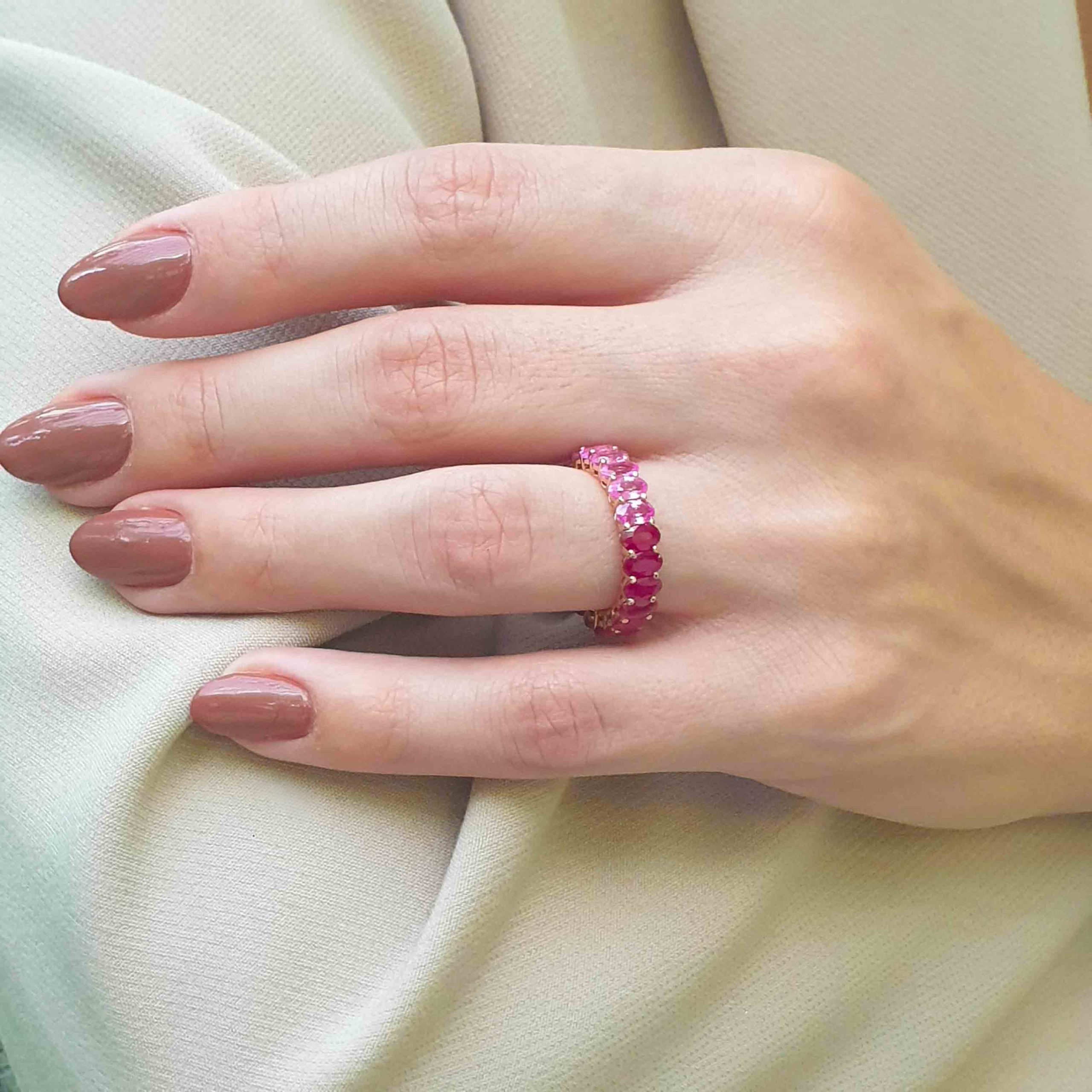 Χρυσό Δαχτυλίδι Ολόβερο με Ροζ Ζαφείρια & Ρουμπίνια