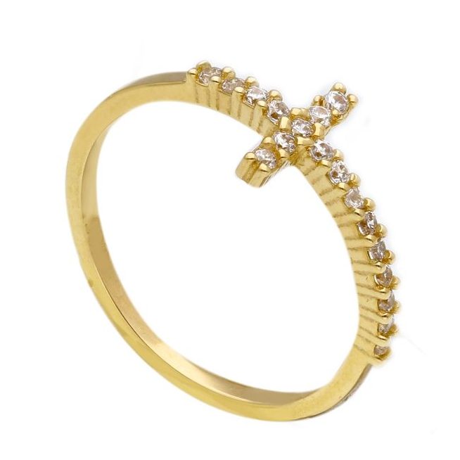 Χρυσό Δαχτυλίδι Σταυρός με Ζιρκόν