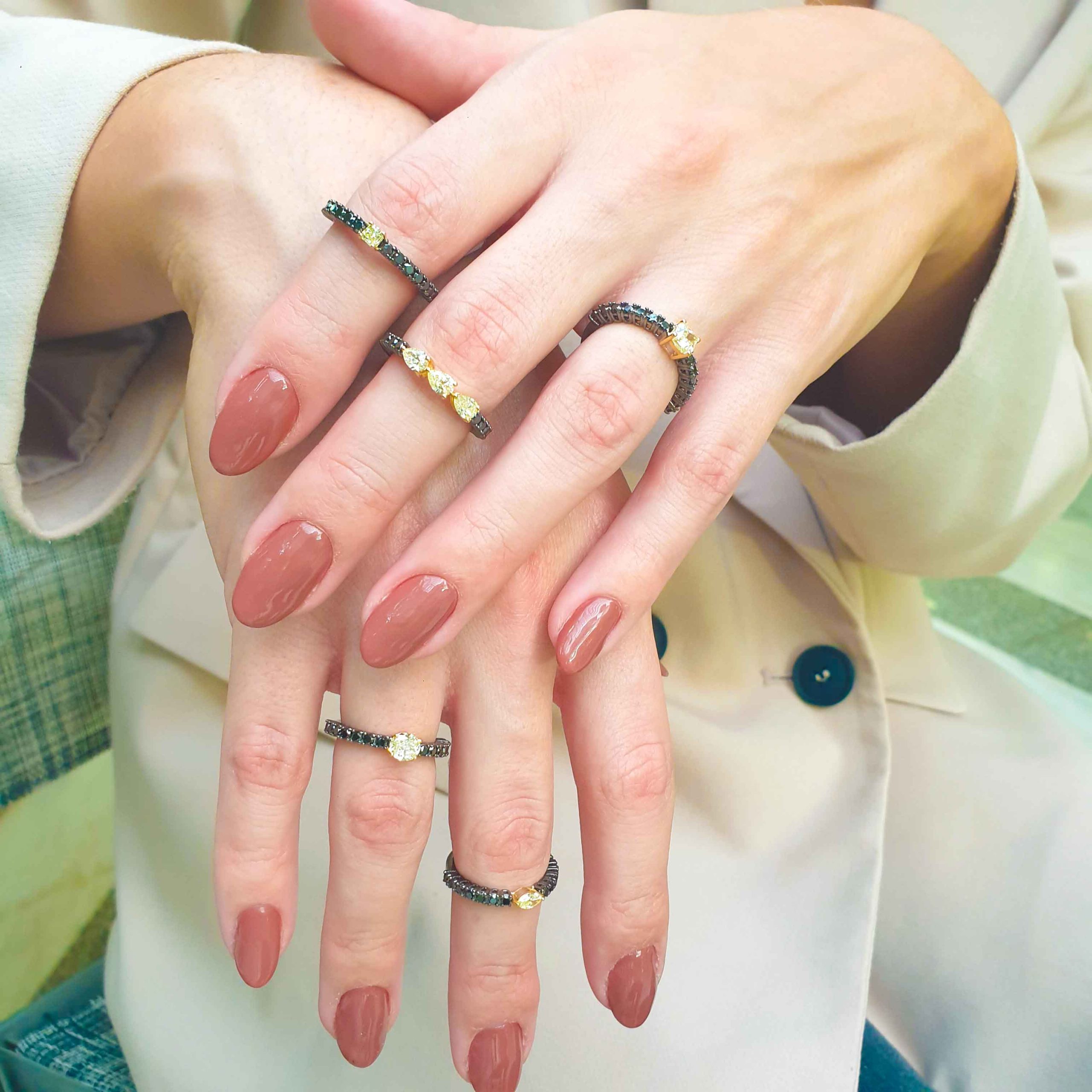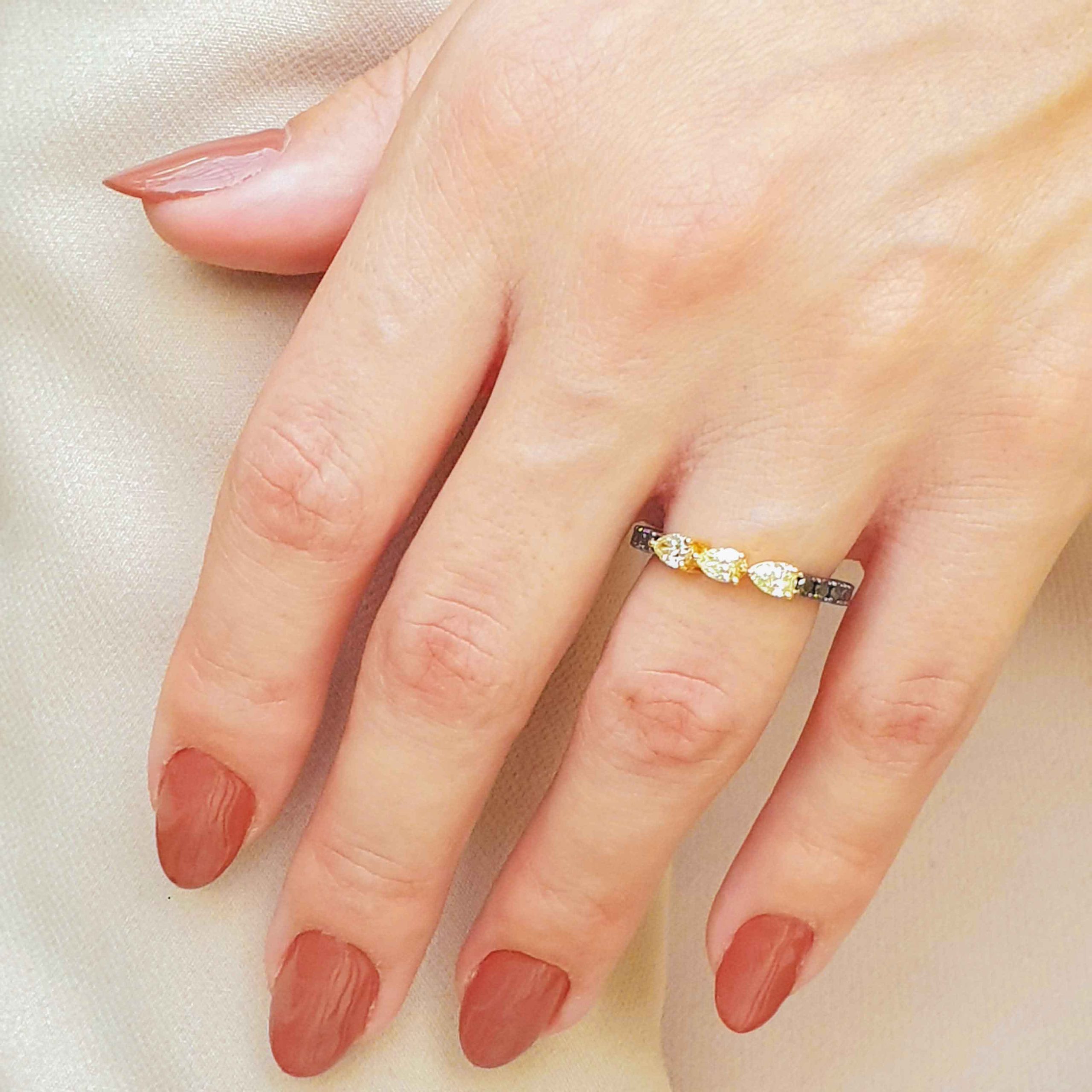 0.64ct κίτρινα διαμάντια σε σχήμα pear & 0.49ct round brilliant κοπής μαύρα διαμάντια