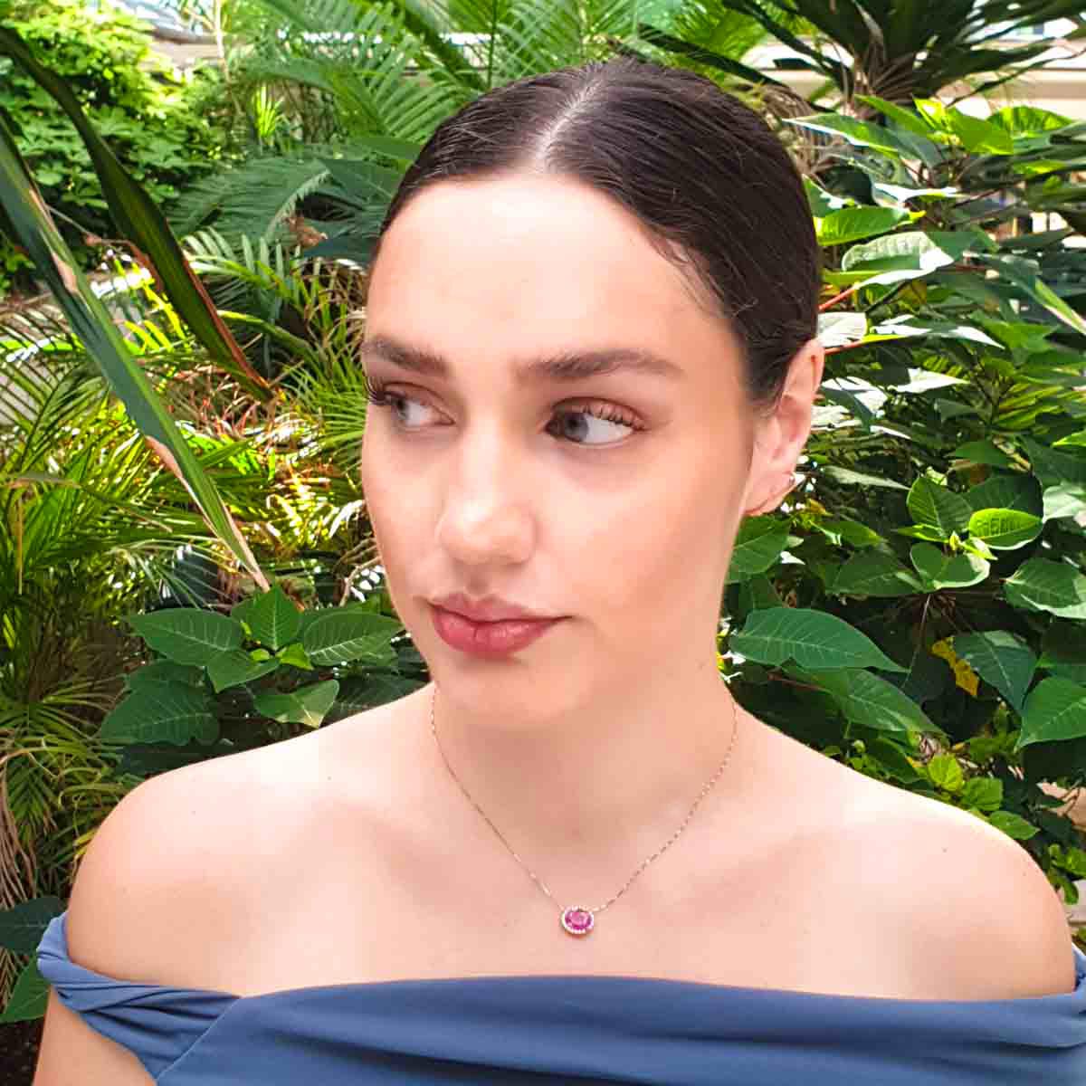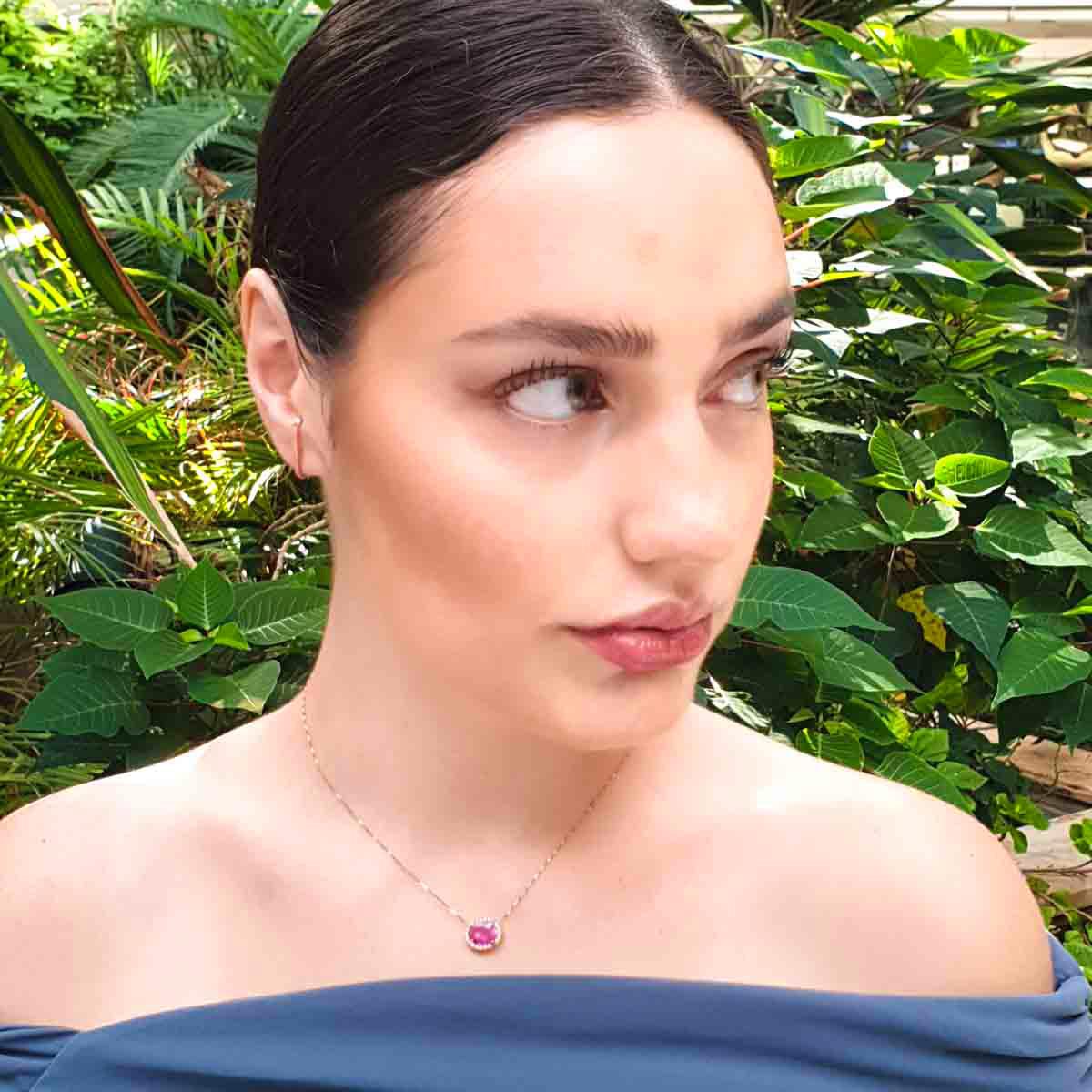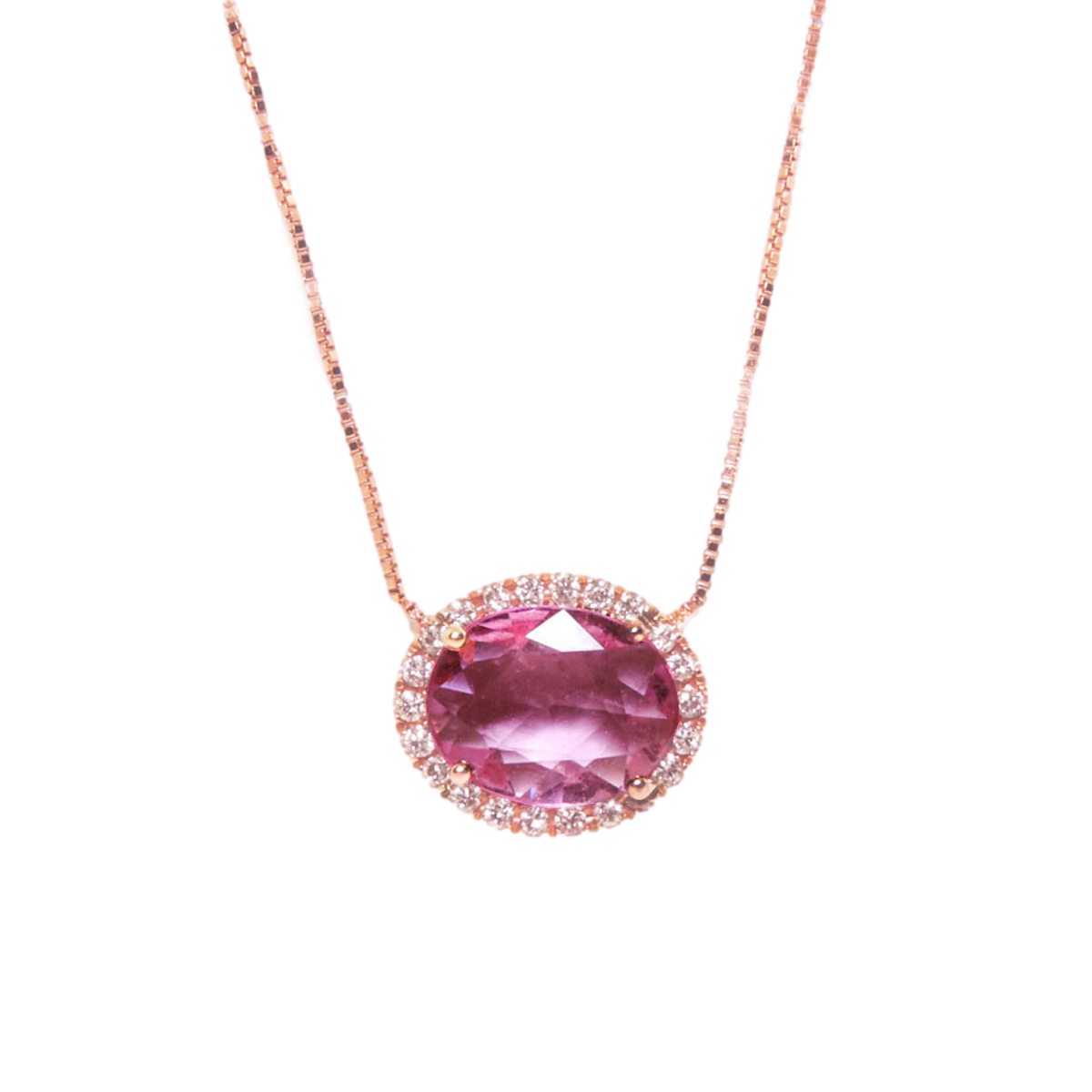 Χρυσό Κολιέ Halo με Ροζ Τουρμαλίνη & Διαμάντια