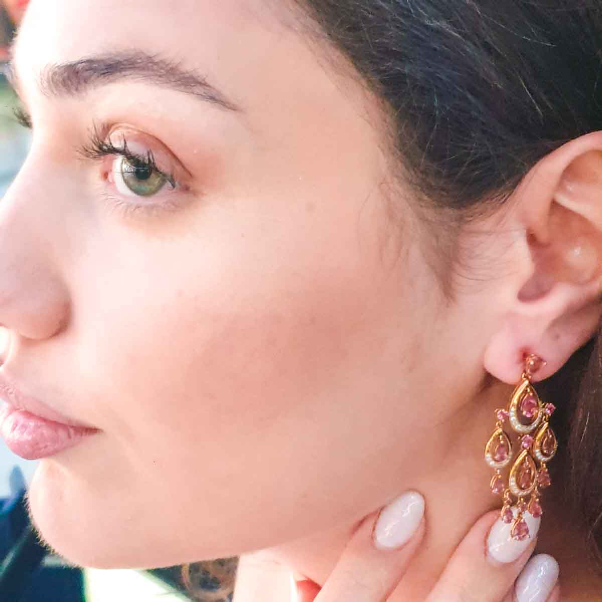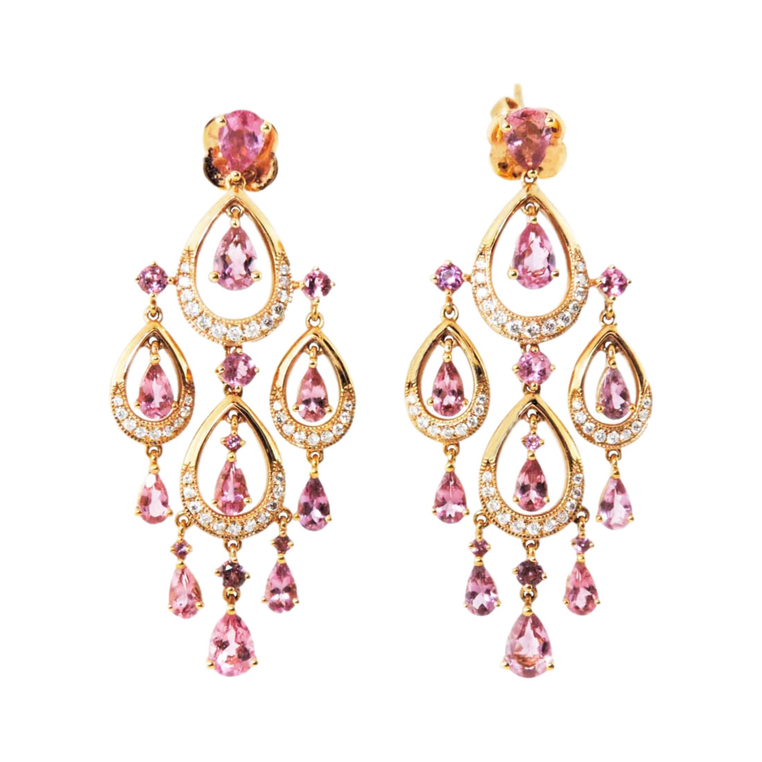 Σκουλαρίκια Chandelier με Ροζ Τουρμαλίνες & Διαμάντια